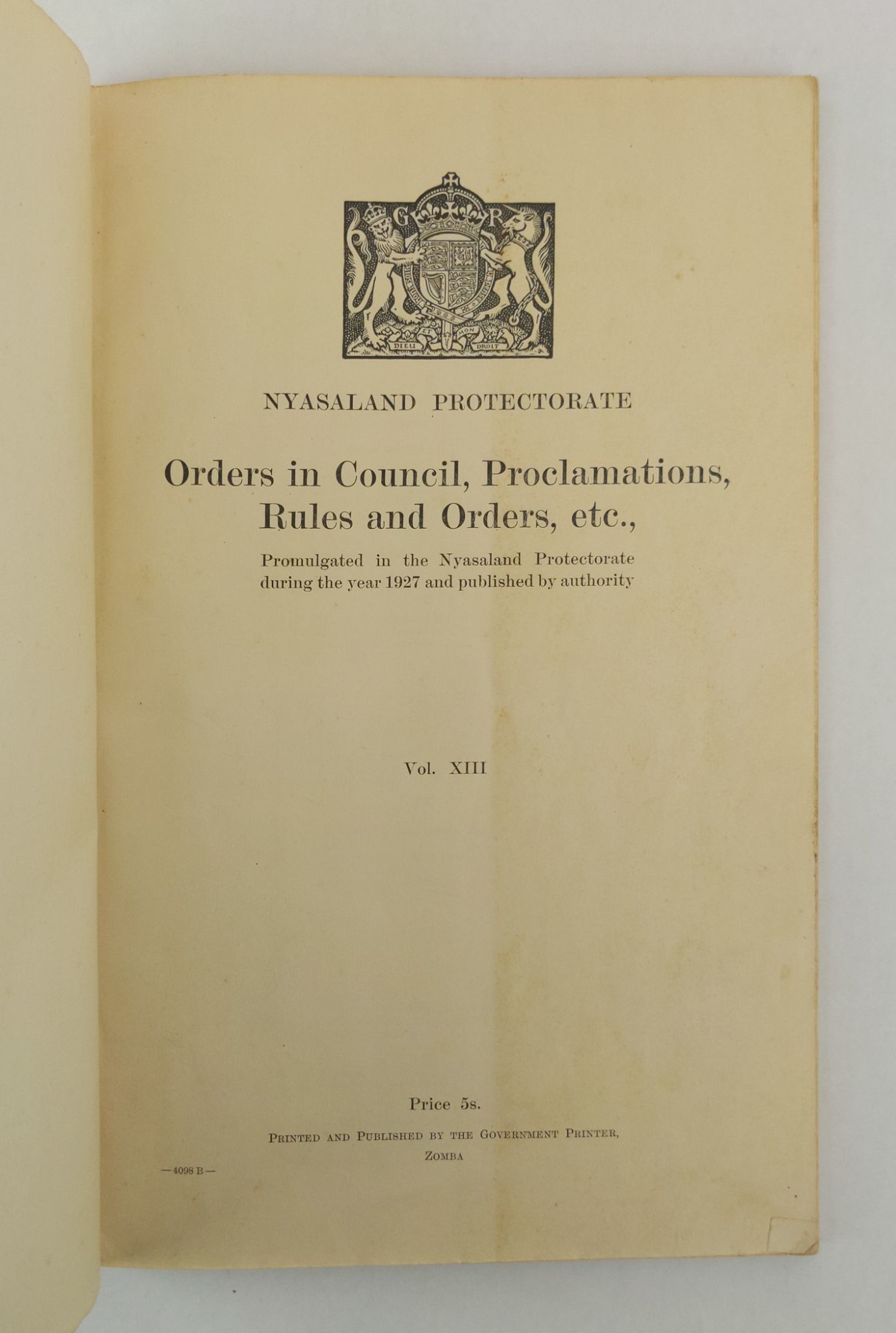 ORDERS IN COUNCIL, PROCLAMATIONS, RULES AND ORDERS, &C., PROMULGATED IN THE NYASALAND PROTECTORATE DURING THE YEAR 1927. VOL. XIII