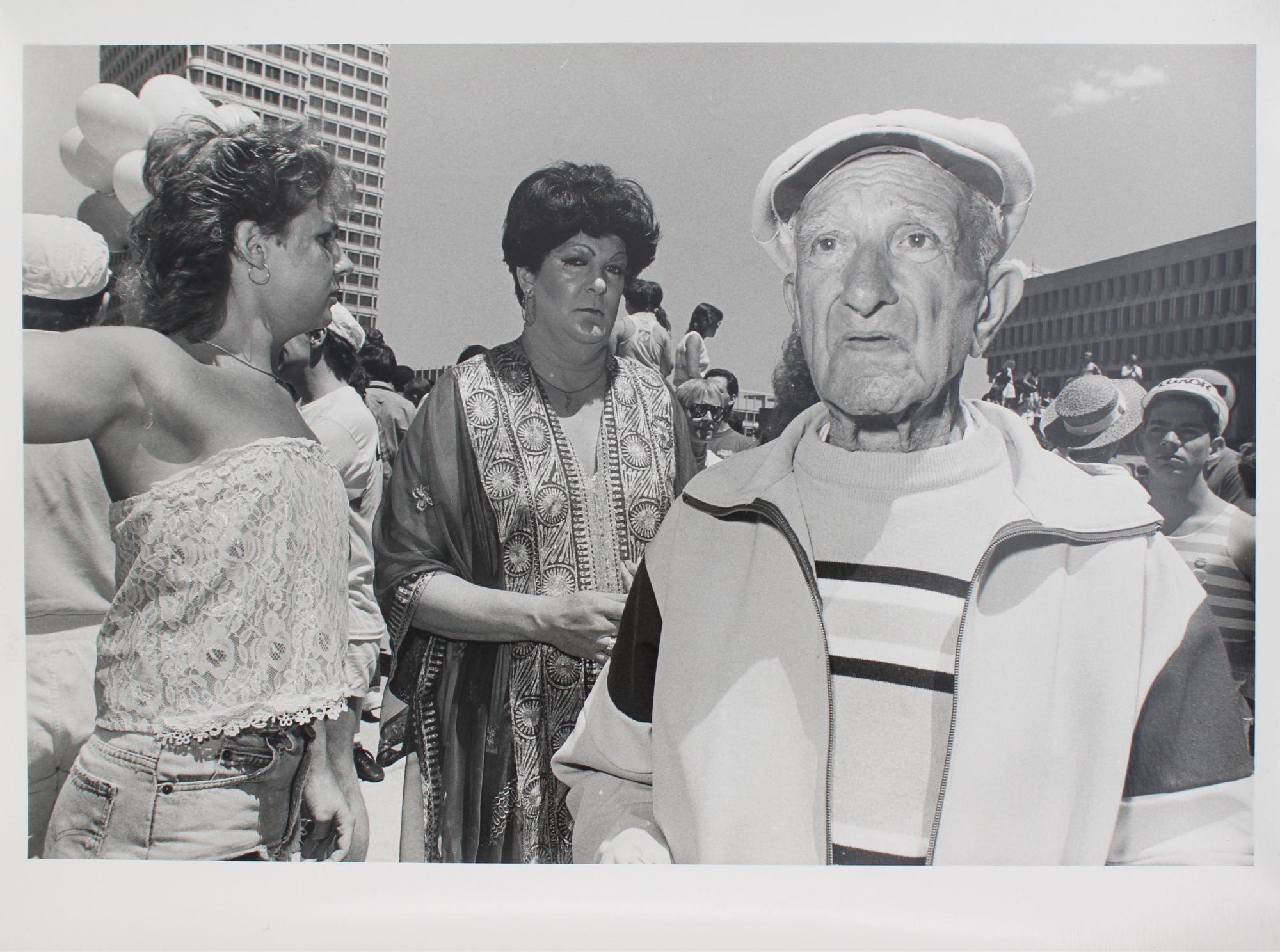 Gay Pride Parade, 1988 [old man with drag queen in background]