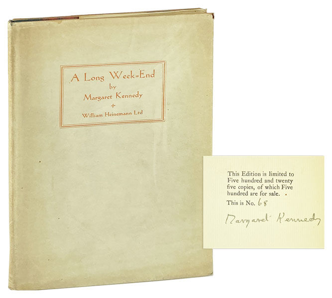 London: William Heinemann Ltd, 1927. Very Good+/Very Good. London: William Heinemann Ltd., 1927. First Edition, Limited to 525 copies of which this is no. 68. Slim octavo; publisher's cloth over marbled paper-covered boards, top edge gilt, cream dust jacket printed in orange; [4],54pp. Moderate wear to jacket extremities, brief tape repair to verso, margins and spine panel a bit toned, light offsetting to endpapers, else a Very Good copy overall. Signed by the author on limitation page.