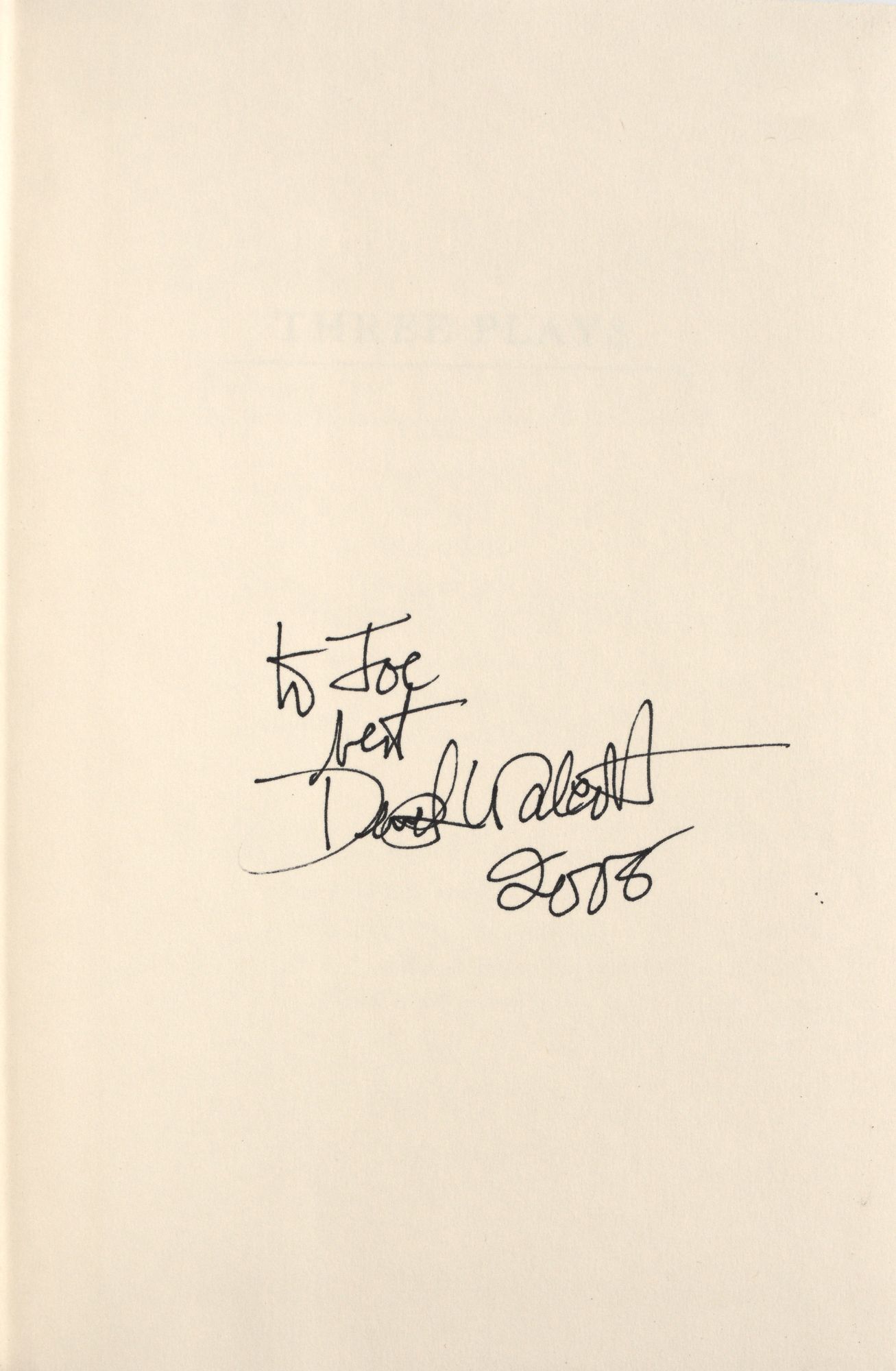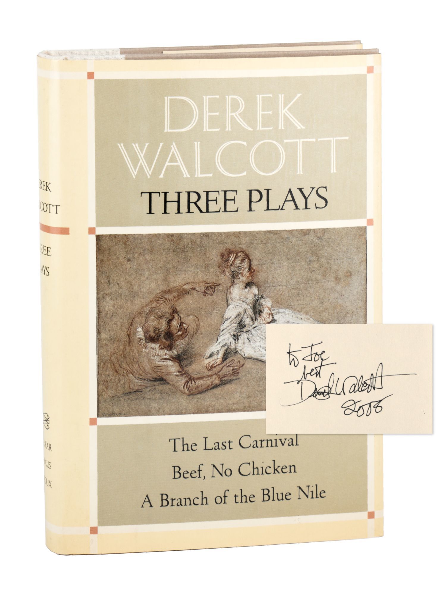 New York: Farrar, Straus and Giroux, 1986. Very Good/Very Good. New York: Farrar, Straus and Giroux, 1986. First Edition. Signed by Walcott with brief inscription to previous owner at front free endpaper. Octavo. 312 pp. Illustrated dust jacket with $22.50 price intact. Light brown and beige boards stamped in gilt.