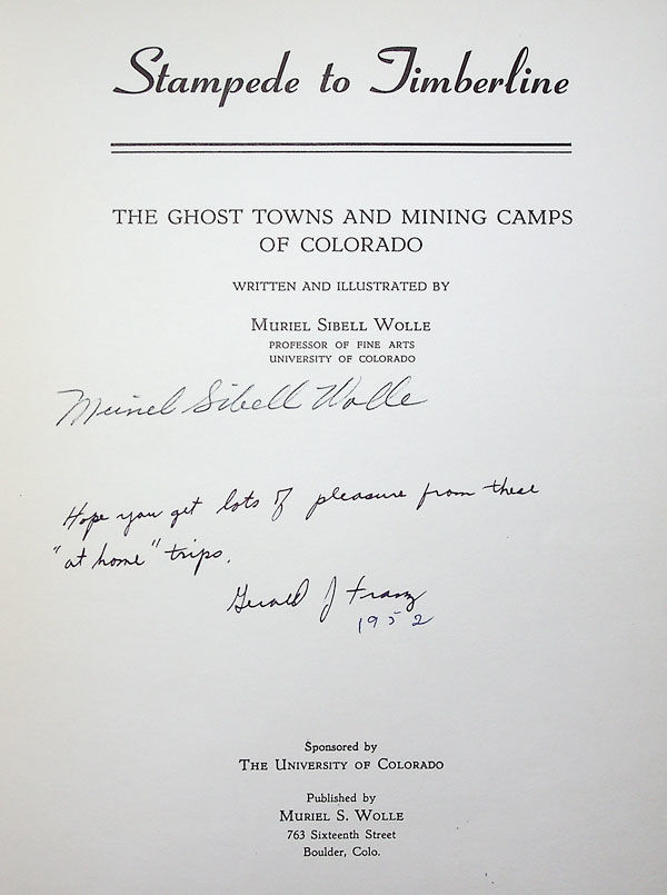 Boulder, CO: Muriel S. Wolle, [1952]. Fifth printing. Quarto (26cm). Taupe cloth stamped in red-orange; cartographic endpapers; [xii],544pp; black and white illustrations. Signed by author on title page, also with other gift inscription. Textblock sagging slightly, boards very lightly splayed, but clean: Very Good.