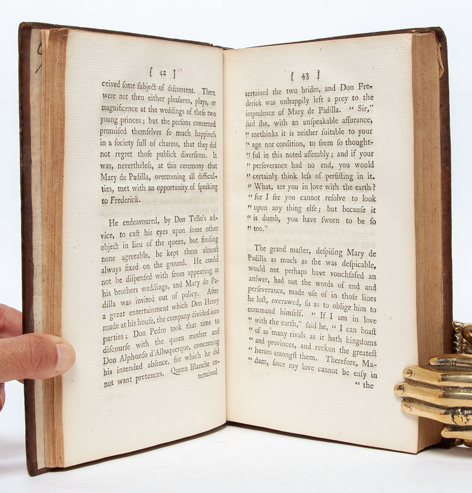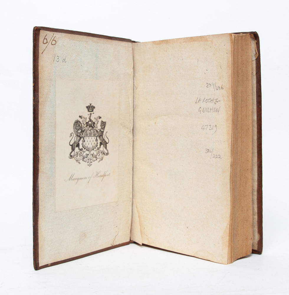 London: Printed for C. Parker, 1772. First English language edition. Contemporary calf with five raised bands. Measuring 217 x 127mm. Front blank neatly excised, else collating complete: [4], 324. Front board slightly bowed with small scuff; lacking spine label, and with cracking to joints near spine ends but remaining sound. Armorial bookplate of the Marquess of Headfort to the front pastedown. Minor worming to pastedowns and to preliminary and final leaves not affecting text. Internally fresh and unmarked. A scarce work by a woman documenting the lives of historic courtesans, it has appeared only twice at auction in the past 85 years and ESTC reports only 13 institutionally held copies (3 of these in the U.S.).