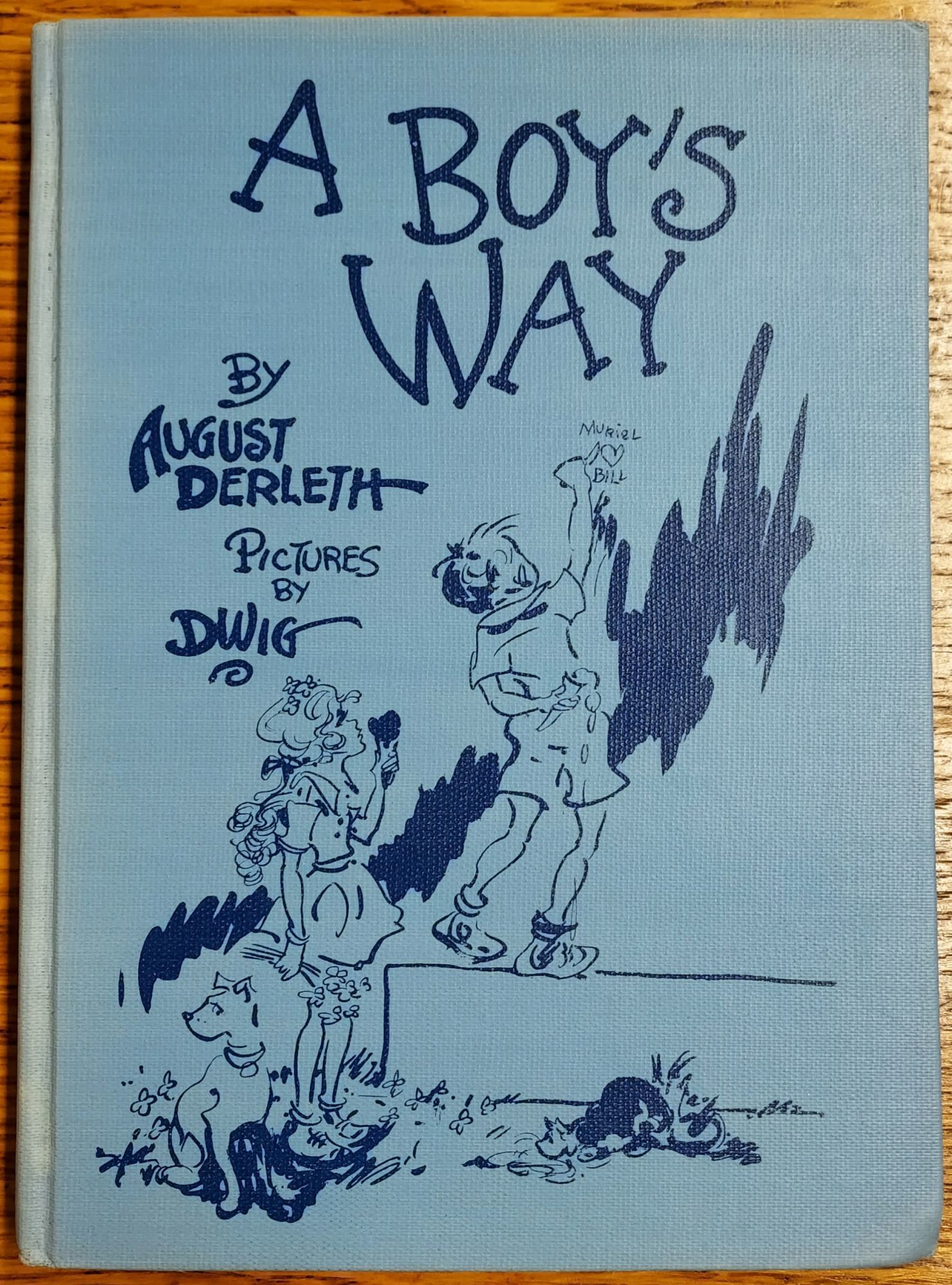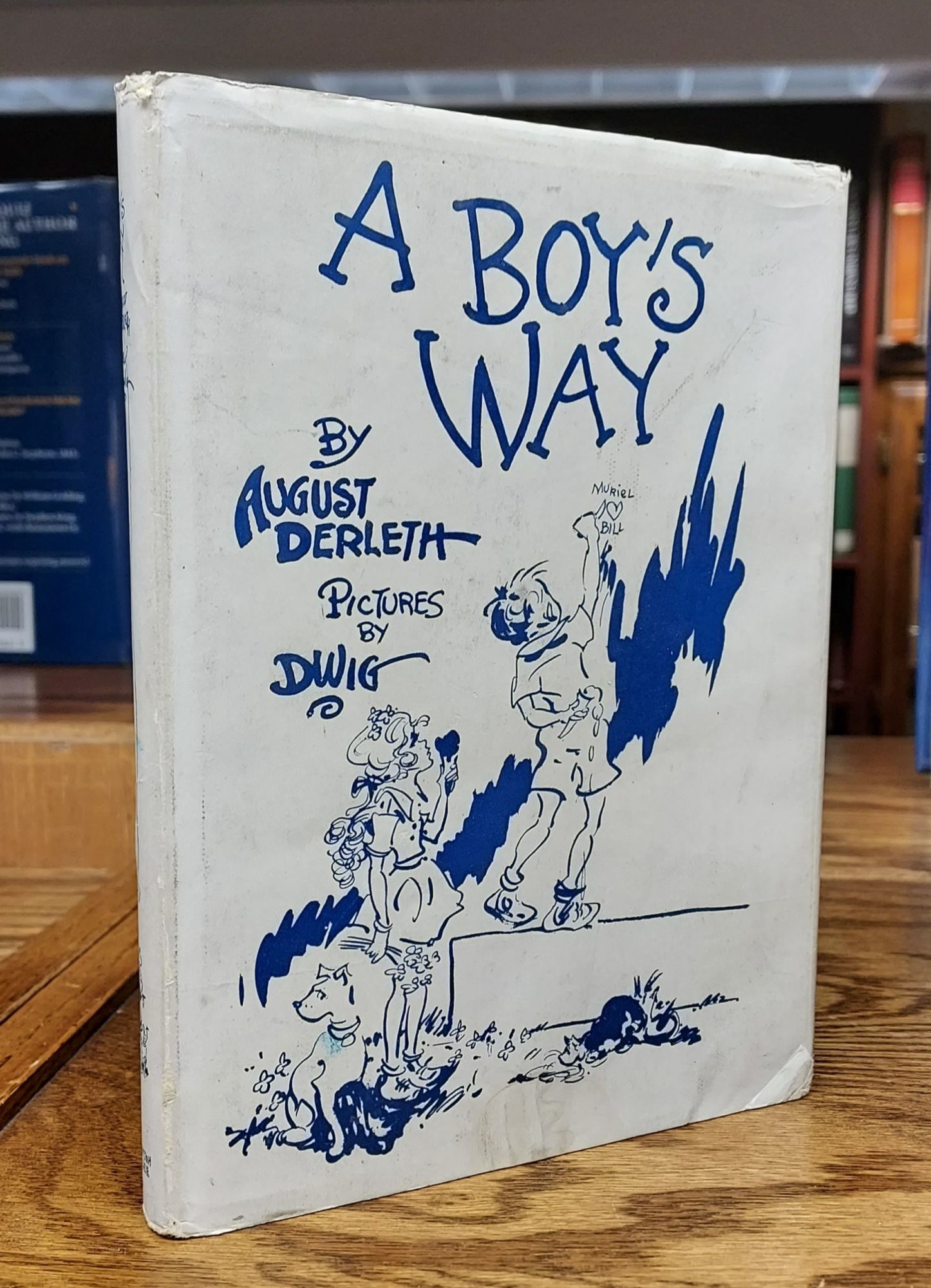 Sauk City, WI: Stanton & Lee Publishers, 1947. First edition. Hardcover. Very Good/Very good. Dwig. SIGNED by illustrator. 109pp. Duodecimo [19 cm] Pale blue pictorial cloth over boards. Ex-library with a label on the front pastedown. Else, no other markings. Legitimately deaccessioned. Spine subtly faded; two small spots of light discoloration along the top edge of the rear cover. In the dust jacket with light soiling, and a handful of small closed and open tears to the edges. Poetry by the founder of Arkham House. Pictures by the American cartoonist and card illustrator Clare Victor "Dwig" Dwiggins (1877-1958).