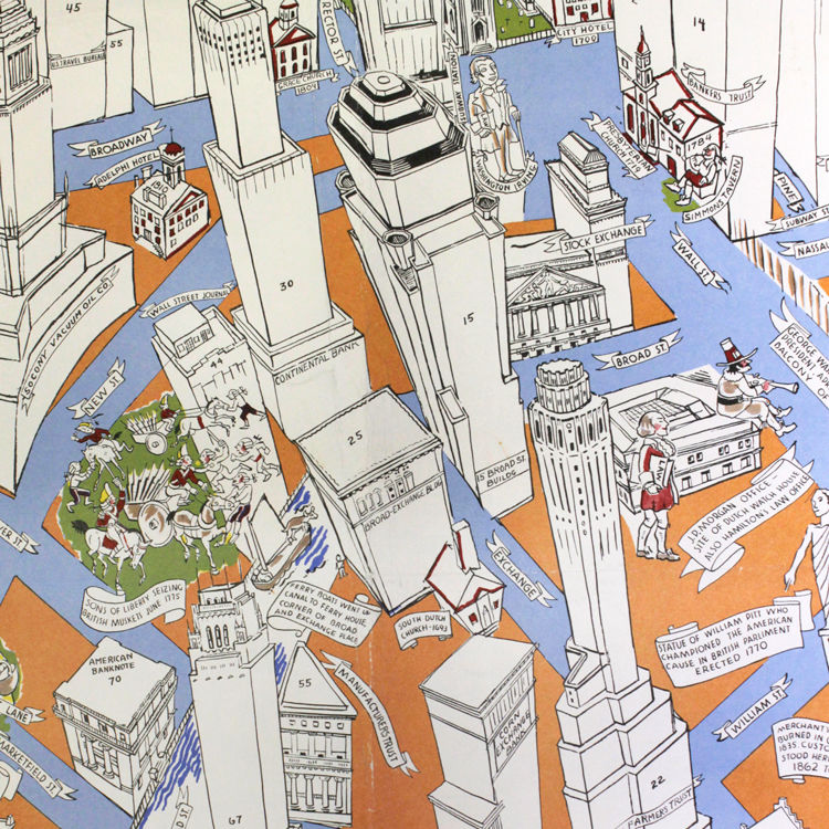 New York: Gardner Osborn, 1938. Color pictorial map. 38 x 25 inches. Tape repairs on verso reinforcing creases and folds. Color pictorial map. 38 x 25 inches. A colorful pictorial map of lower Manhattan, published for the World's Fair. Rumsey 8101