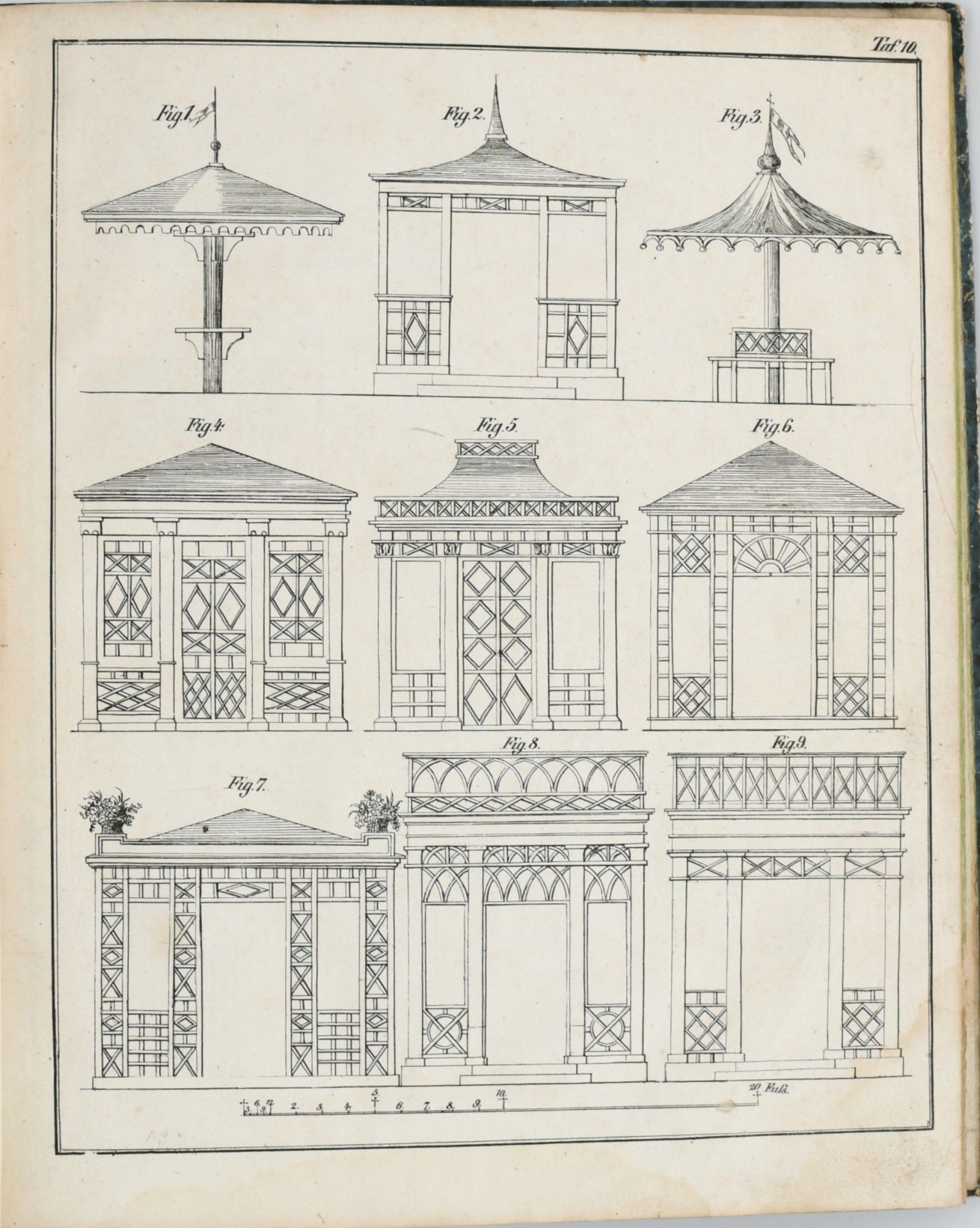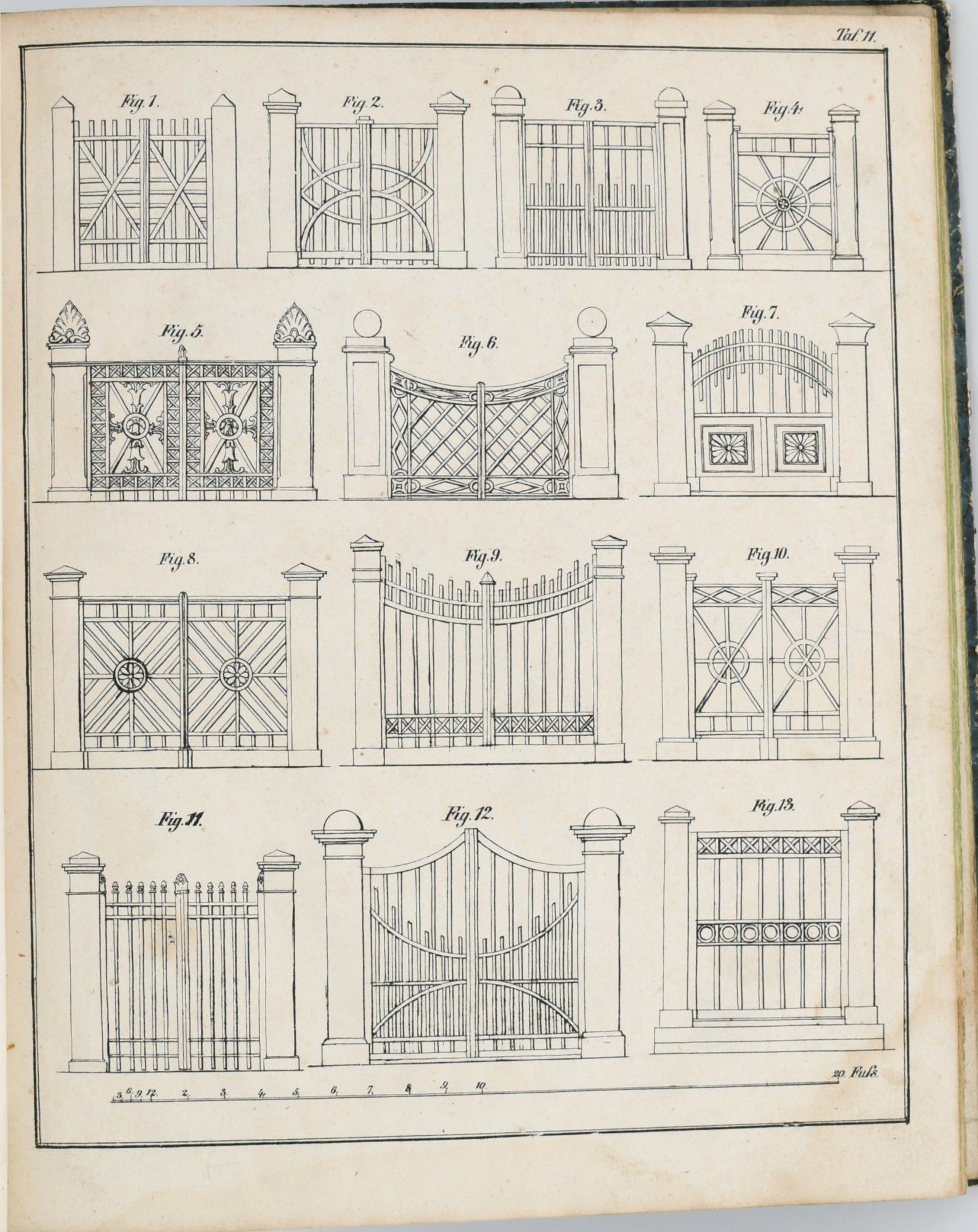 Weimar: /Bernhard Friedrich Voigt, 1836. Small quarto, in the publisher' rather worn paper-covered boards; [2], 3-10, [11. 12] followed by 27 of 28 pages of lithographic plates of measured drawings of pieces of furniture designed for the used of cabinetmakers or carpenters [NOTE: the 28th page of drawings is lacking in this copy. There are several figures on each leaf. There are pencil scribbles on the verso of the final leaf and the rear pastedown; the title leaf is awkwardly creased.~~This is an uncommon book with two copies found on OCLC, both in Germany. We find no copies at auction, and certainly no copies in commerce.