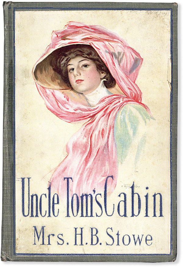 New York: Hurst and Company, [n.d., ca 1900]. Octavo (19cm). Gray-green cloth with color pictorial onlay to front board, depicting an elegant early c20 woman with pink draperies over a large hat; vi,452,[6]pp; 6pp publisher's ads at rear; frontispiece portrait of Stowe. A cheap reprint edition of Stowe's abolitionist bestsller, with a somewhat incongruous Gibson girl depicted on the front cover. [63479].