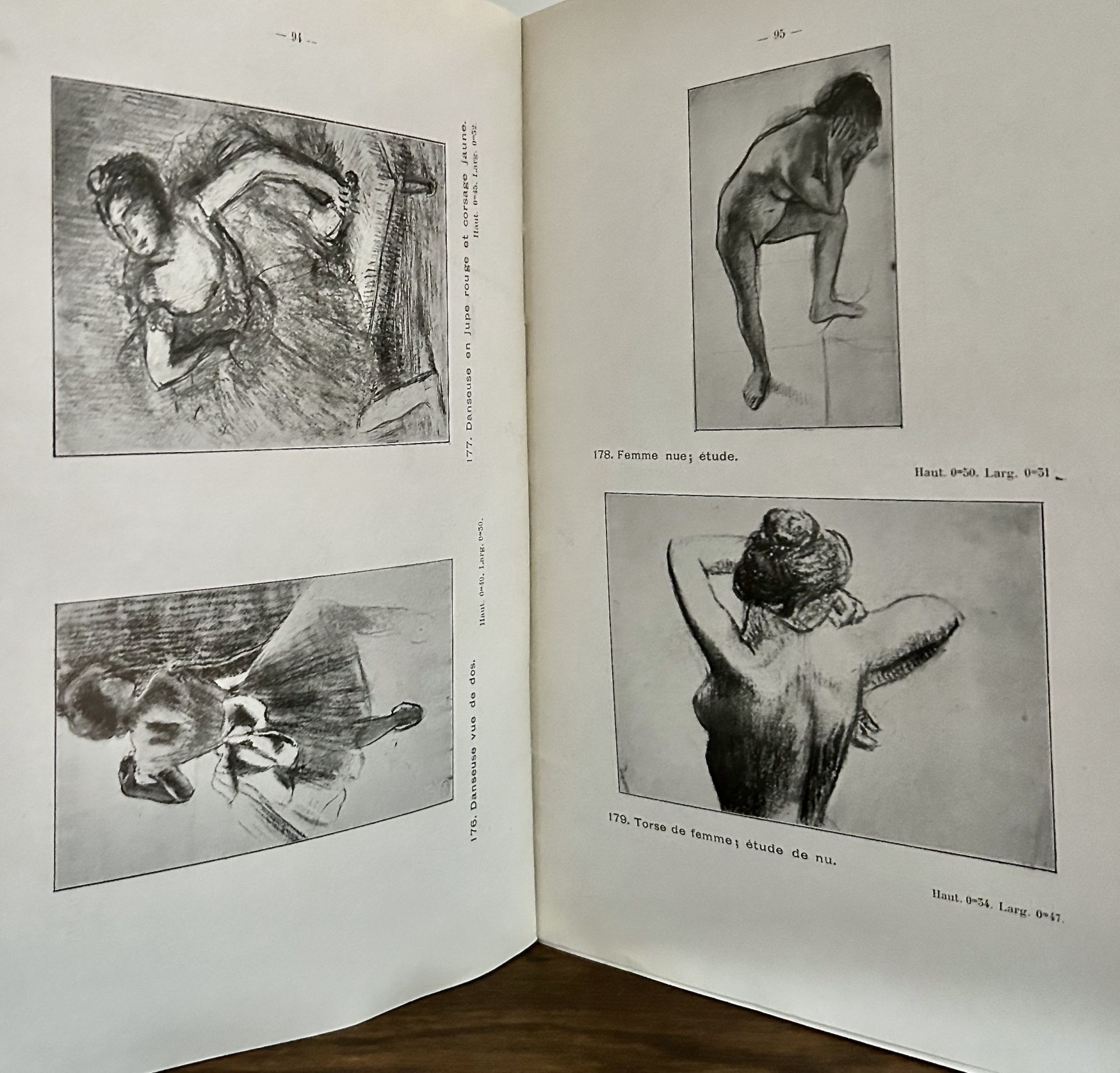 Paris: Georges Petit, 1918. First edition. Stiff Wraps. Orig. decorated stiff wrappers. Very good. 218 pages. 27 x 18.5 cm. Title page printed in red and black. 386 black and white images by Degas. Interior contents published on glossy stock, every page is clean and bright. Chips to spine with some loss of original design, binding tight.