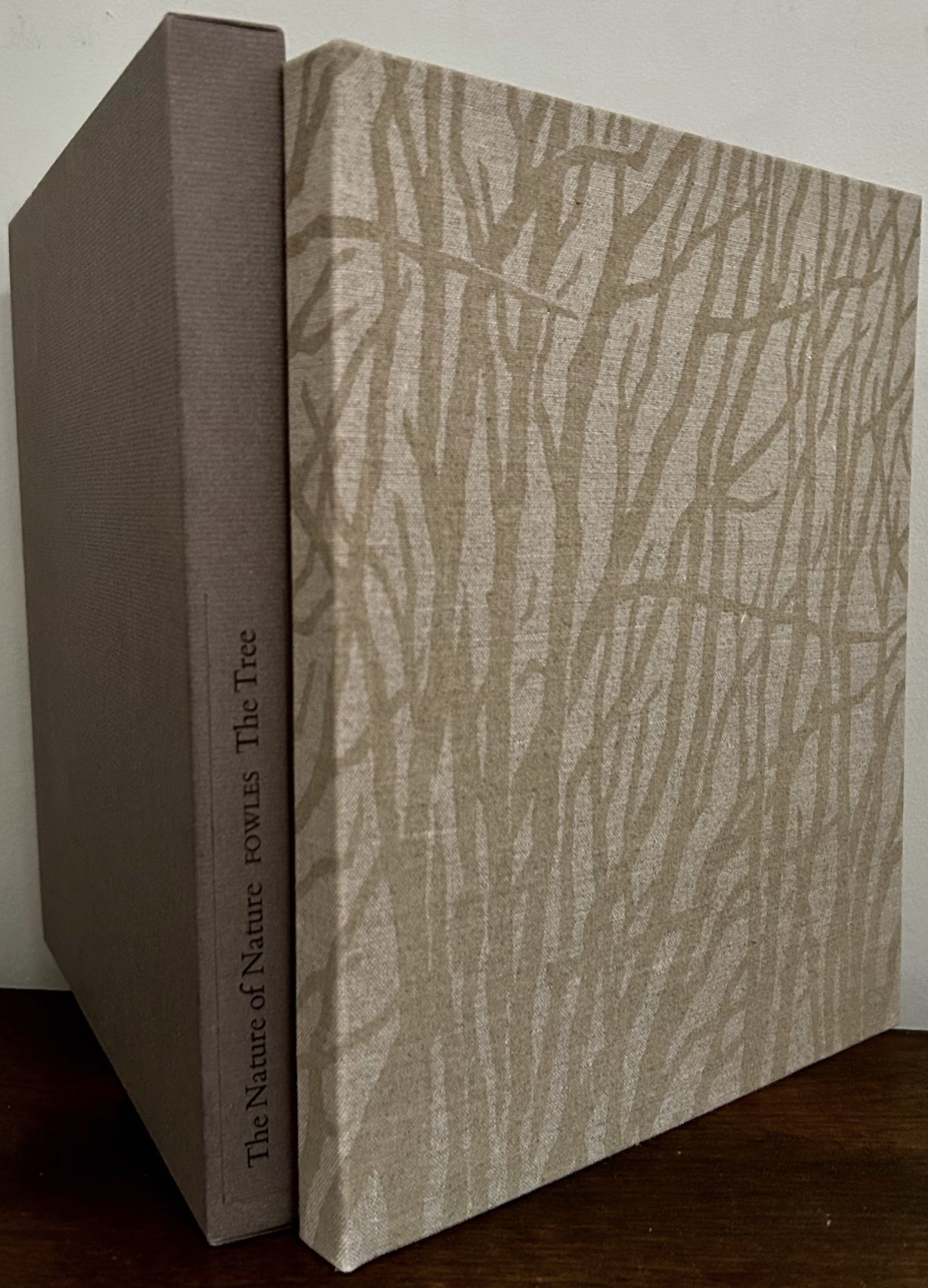 Covelo: The Yolla Bolly Press, 1995. First edition. Hardcover. Orig. illustrated beige cloth. Fine in fine taupe slipcase. 99 pages. 25.5 x 22.5 cm. Limited edition, copy 20 of 185 signed by John Fowles and Aaron Johnson, printed on mouldmade Waterford paper. Belgian linen binding with eight full page colored woodblocks by Aaron Johnson. As the author notes, "Nature continues to fascinate, delight and teach me........" Wide text margins.