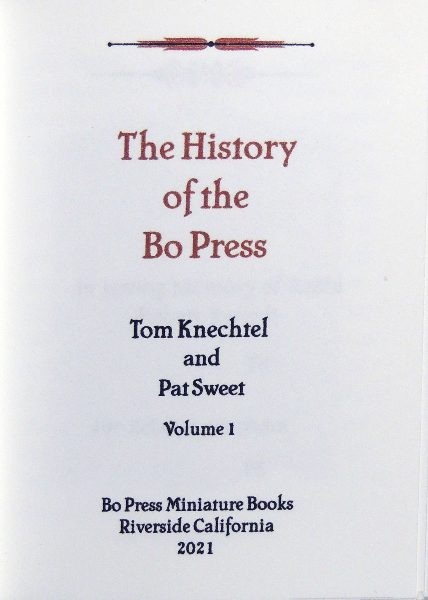 - Riverside, CA: Bo Press Miniature Books, 2021