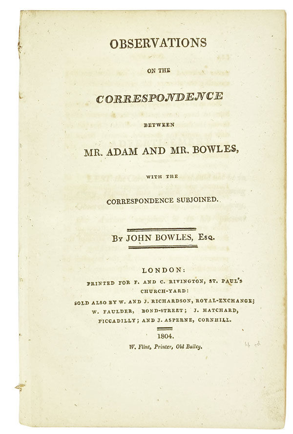 Observations on the Correspondence between Mr. Adam and Mr. Bowles, with the Correspondence Subjoined