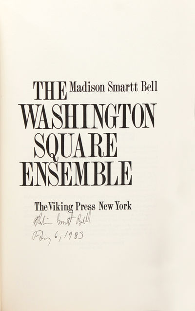New York: Viking, 1983. First edition. 1 vols. 8vo. Red boards, black spine. Fine in near fine dust jacket (tiniest scuff at top of back panel). First edition. 1 vols. 8vo. The author’s first novel, signed by the author and dated on the title page (6 February 1983) and additionally inscribed on the half title “for Jane T— from Madison Bell”.