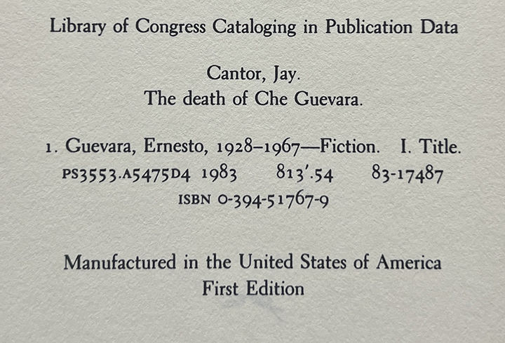 New York: Alfred A. Knopf, 1983. First Edition. Hardcover. Near Fine/Near Fine. Near Fine in a Near Fine jacket, clipped, toned at the flaps, a few small closed tears at the eges. Quarter black cloth with dark grey paper on the boards. Square and firmly bound, clean internally. Cantor's debut novel, a fictionalized telling of Guevara's transformation from "privileged upper-class youth into one of the radical heroes of the twentieth century.