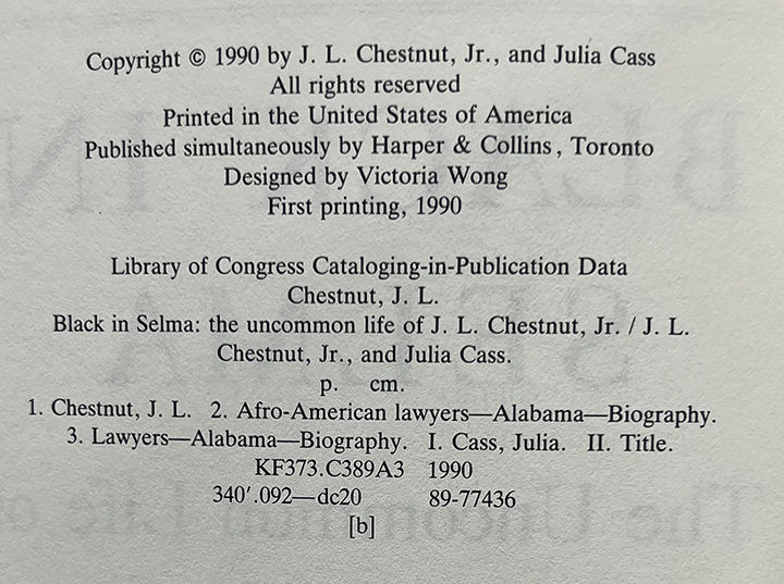 Black in Selma; The Uncommon Life of J.L. Chestnut, Jr.