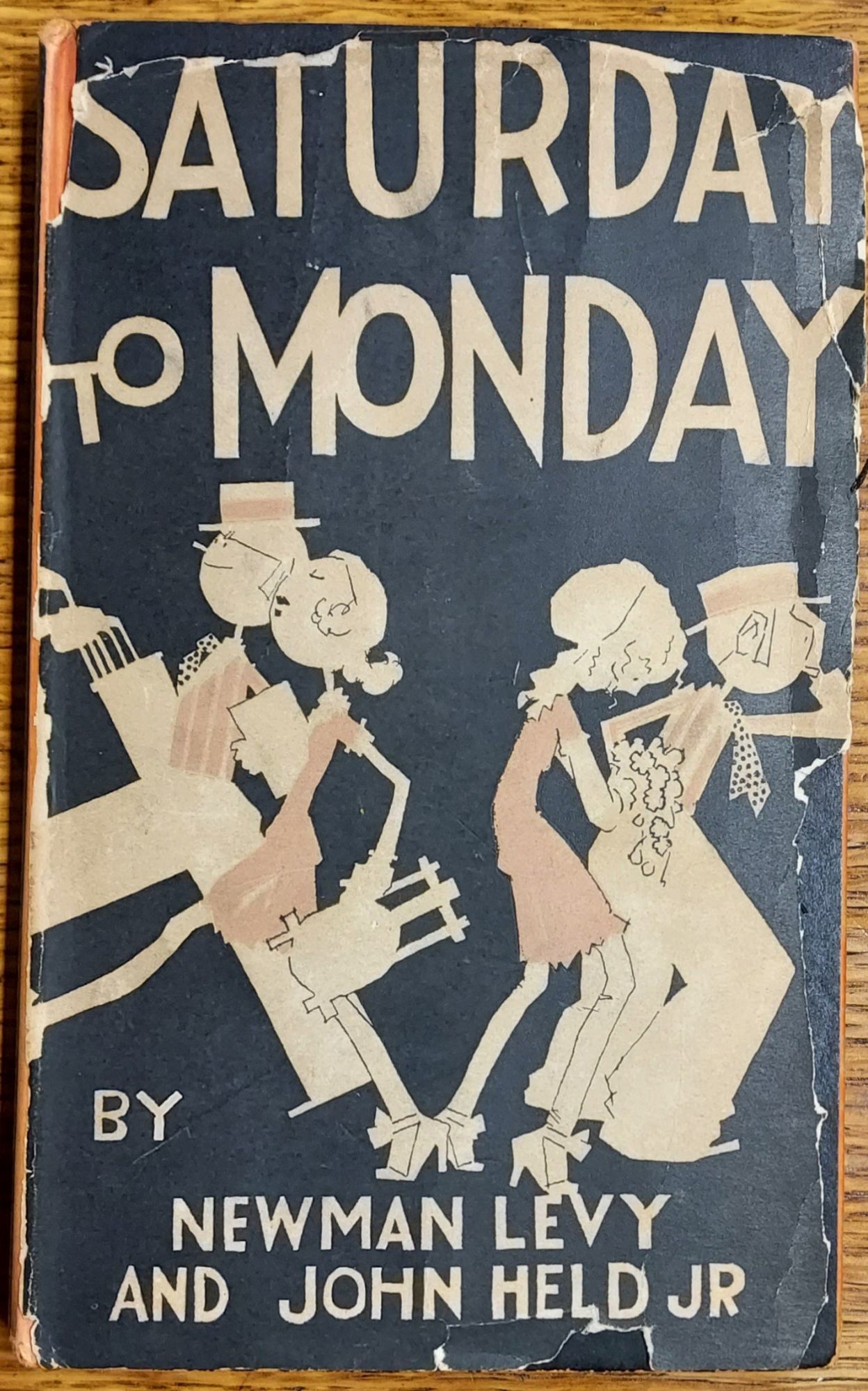 New York: Alfred A. Knopf, 1930. First and Second Printing before Publication. Hardcover. Very good/Poor. 79pp. Duodecimo [20 cm] Orange and black pictorial paper over boards. Light wear at the spine ends and corners of the covers. Top quarter of the rear board discolored. Text block just begining to crack at p. 37 (book still very sturdy). With the original dust jacket, in 3 torn pieces. Newman Levy's verse illustrated by John Held Jr.