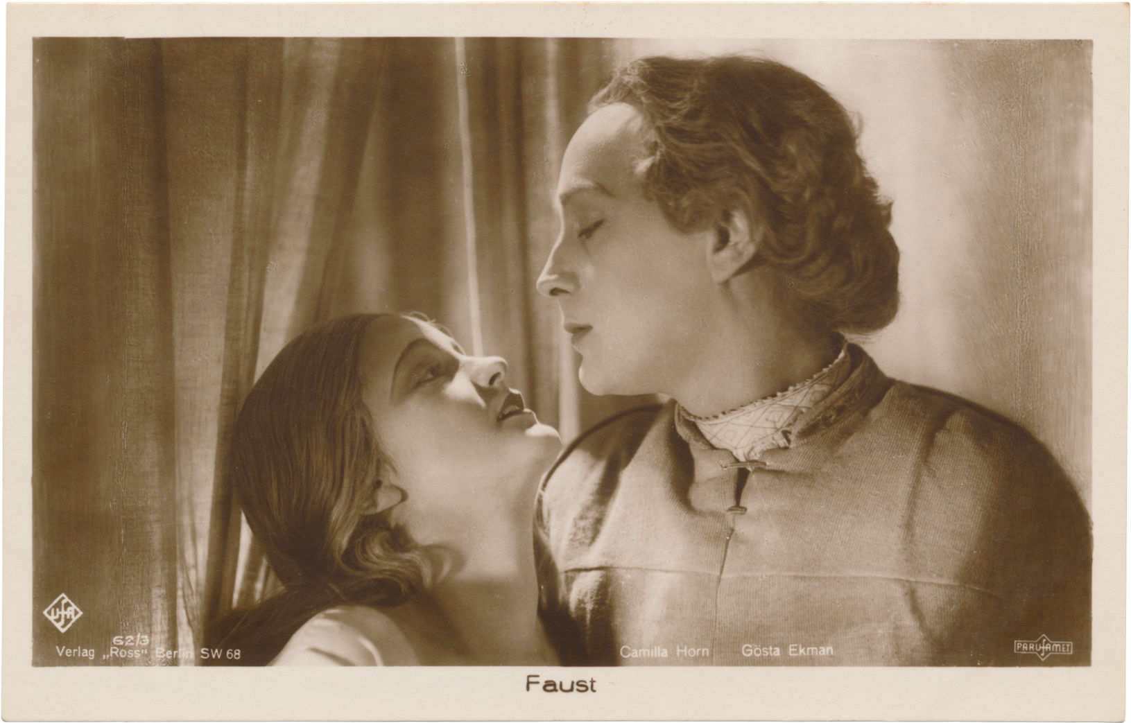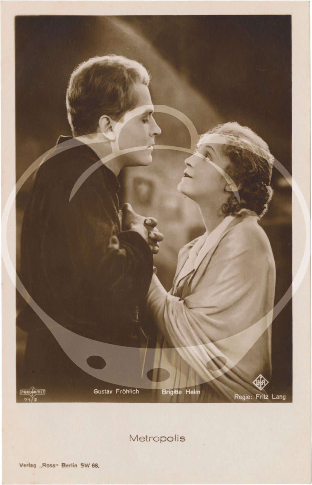 Berlin: Ross Verlag, 1920. Collection of ten vintage UFA postcards, including two depicting scenes from F.W. Murnau's "Faust" (1926) and eight depicting scenes from Fritz Lang's "Metropolis" (1927).