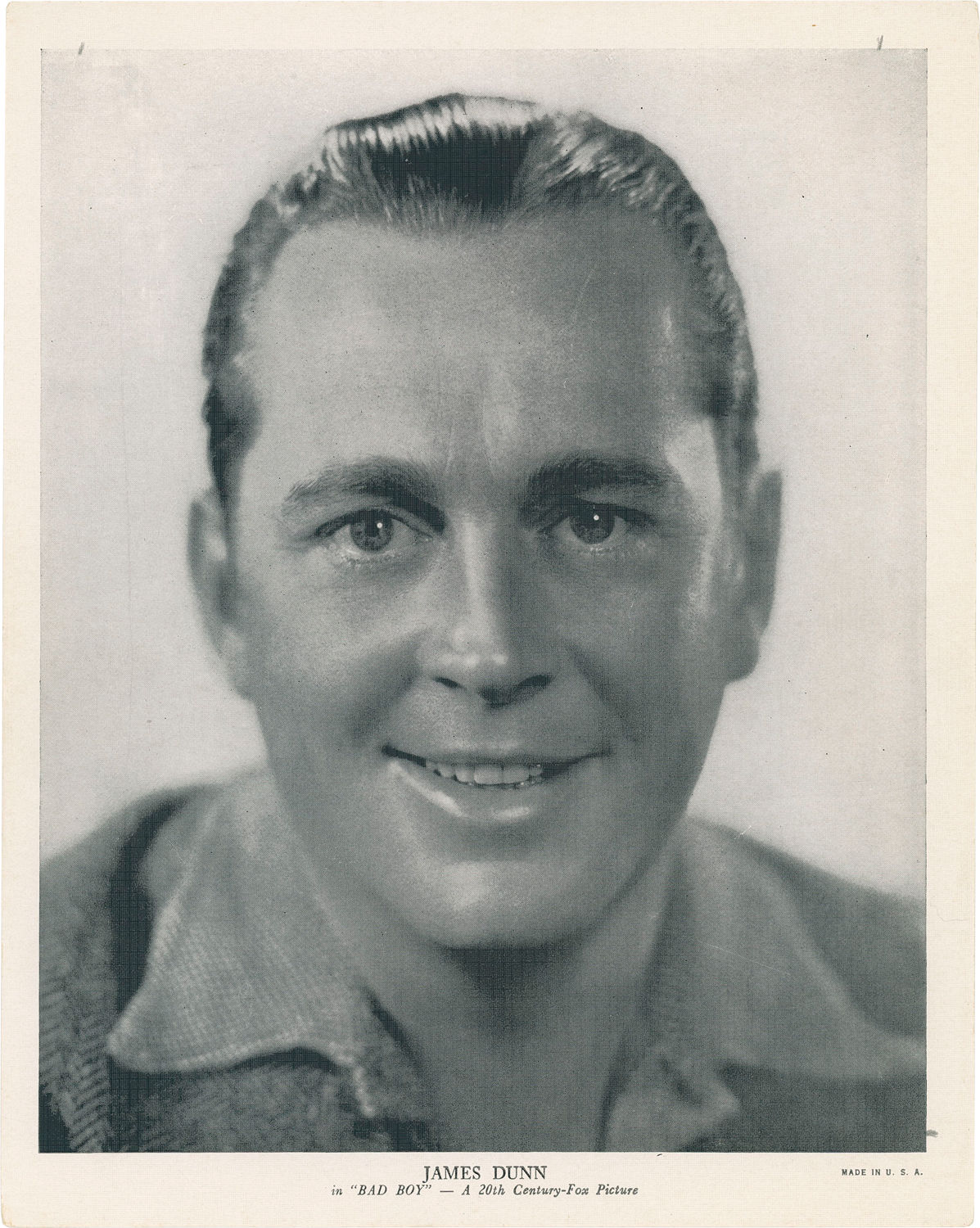 Los Angeles, CA: Twentieth Century-Fox, 1935. Vintage portrait photograph of actor James Dunn, circa 1935, produced to promote his role in the film "Bad Boy."
