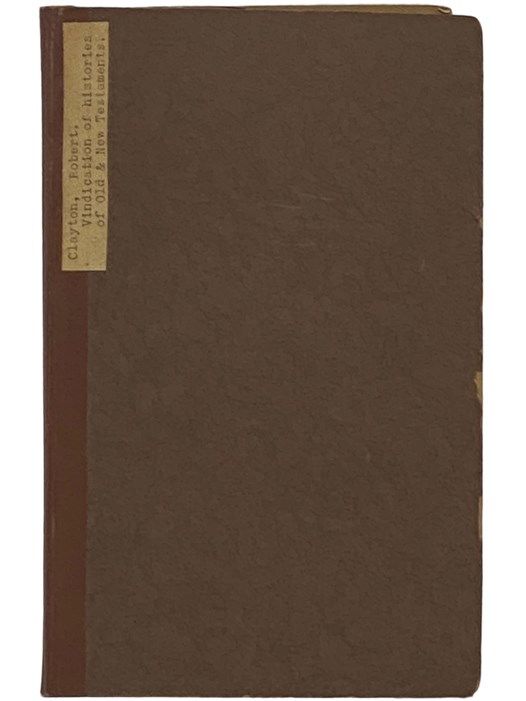 London/Dublin: Bowyer, 1753. Hard Cover. Fair/No Jacket. Boards missing, set in paper binding. Label on front board. Pencil note on flyleaf, ink note on half-title page and title page, ink stamp on title page verso. 1753 Hard Cover. 140 pp. First of what would be three parts, printed 1742-1758. Robert Clayton (1695–1758) was an Irish Protestant bishop, now known for his Essay on Spirit. In his own lifetime, he was notorious for his unorthodox beliefs, which led his critics to question whether he could properly be called a Christian at all, and at the time of his death, he was facing charges of heresy. Clayton proposed, 2 February 1756, in the Irish House of Lords, that the Athanasian creed and Nicene creed should be removed from the liturgy of the Church of Ireland. Despite the controversy this aroused, no proceedings were taken against him until the publication of the third part of the 'Vindication of ... the Old and New Testament,' Dublin, 1757, when he renewed his attack on the Trinity and advanced doctrines contrary to the Thirty-nine Articles. Horace Walpole said caustically that his Vindication seemed calculated to destroy anyone's faith in the Testaments. The government, by now seriously alarmed by the heterodoxy of Clayton's opinions, ordered that he be prosecuted for heresy: a meeting of Irish prelates was called at the house of the Primate of Ireland, and Clayton was summoned to attend. Before the appointed time he died, on 26 February 1758. His next work was 'A Vindication of the Histories of the Old and New Testament, in answer to the Objections of . . . Bolingbroke,' pt. i., Dublin, 1752. In 1753 he published 'A Journey from Grand Cairo to Mount Sinai, and back again. In Company with some Missionaries de propaganda Fide,' &c., translated from a manuscript which had been mentioned by Edward Pococke in his 'Travels.' It included an account of the supposed inscriptions of the Israelites in the Gebel el Mokatab. The work was addressed to the Society of Antiquaries, and the author offered to assist an exploration in Mount Sinai, but the society took no steps in the matter. Edward Wortley Montagu, however, was induced to visit the spot and give an account of the inscriptions. The same year Clayton published 'A Defence of the Essay on Spirit,' London. His next work was 'Some Thoughts on Self-love, Innate Ideas, Freewill,' &c., occasioned by David Hume's works, London, 1754. The same year he brought out the second part of the 'Vindication of ... the Old and New Testament,' Dublin. This produced Alexander Catcott's attack on his theories of the earth's form and the deluge. In 1756 appeared 'Letters which passed between . . . the Bishop of Clogher and Mr. William Penn concerning Baptism,' London, in which he asserted the cessation of baptism by the Holy Ghost. Clayton's friend William Bowyer obtained a copy of the correspondence and published it.