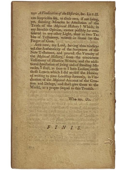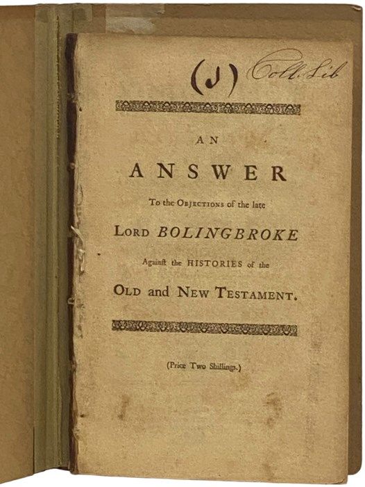 A Vindication of the Histories of the Old and New Testament. In Answer to the Objections of the Late Lord Bolingbroke. In Two Letters to a Young Nobleman