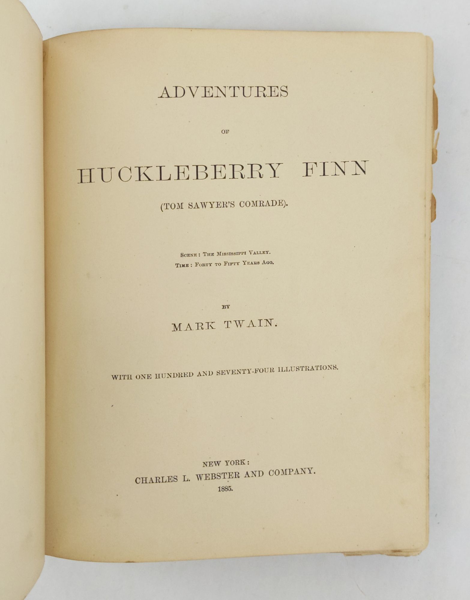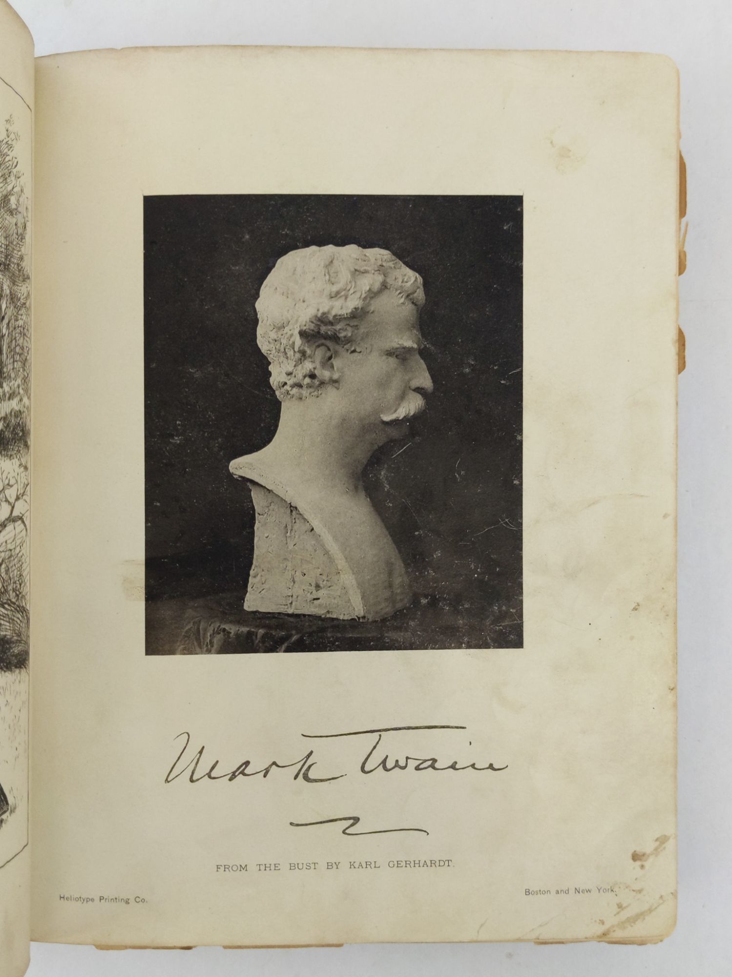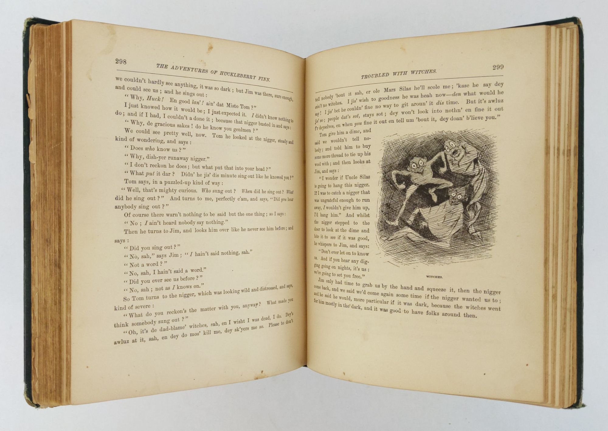 New York: Charles L. Webster, 1885. First Edition. Hardcover. Octavo, [1]-366 pages. In Fair condition. Bound in green cloth with gilt and black lettering and decoration. Boards show rubbing to corners exposing boards, bumping to corners, fraying to spine edges, boards exposed along tail edges, head edge of spine partially chipped off, and mild to moderate edge and shelf wear. Binding somewhat shaken. Text block has splitting to interior hinges, light age toning, last page of illustration list detached, light gray staining on some forward pages, and tearing to fore edge of some forward pages. Points includes: List of illustrations has page 88 rather than page 87, "was" instead of "saw" on page 57, last 5 in 155 on page 155 set slightly lower than other numbers, Leaf 23 8 pasted under Terminal endpaper, and earliest portrait frontispiece with "Heliotype Printing Co." BAL 3415. [Shelved in Room G]. 1372620. Special Collections.