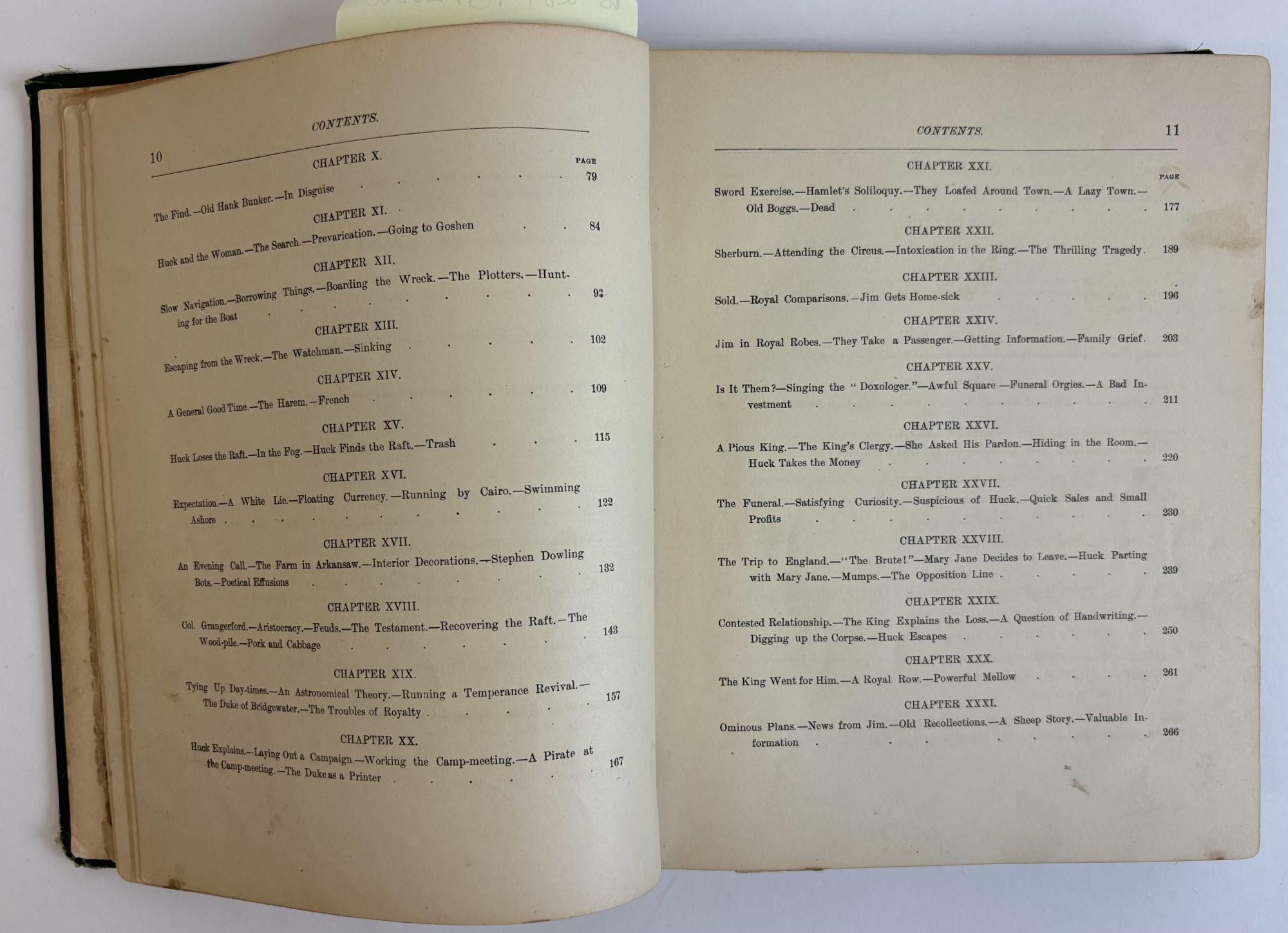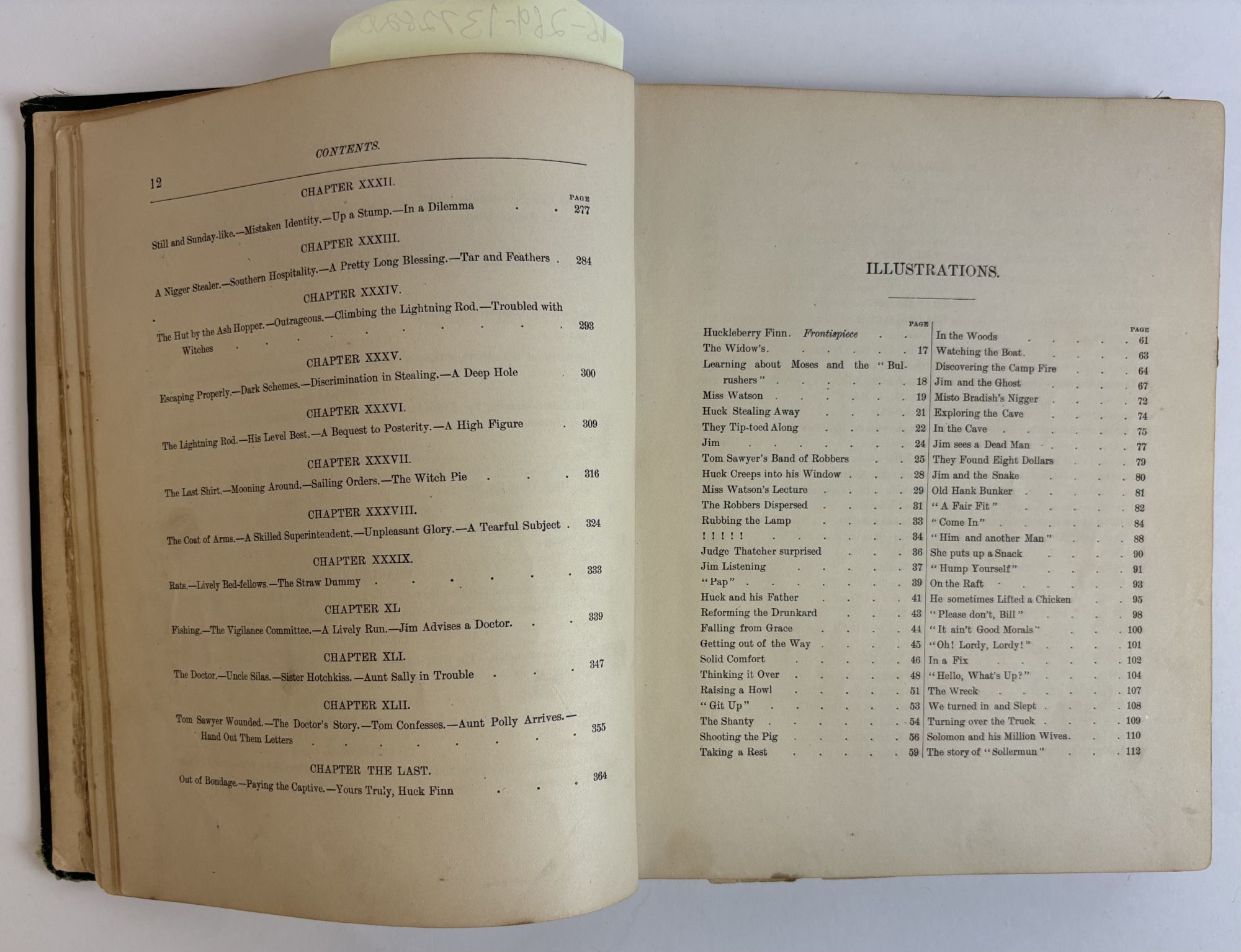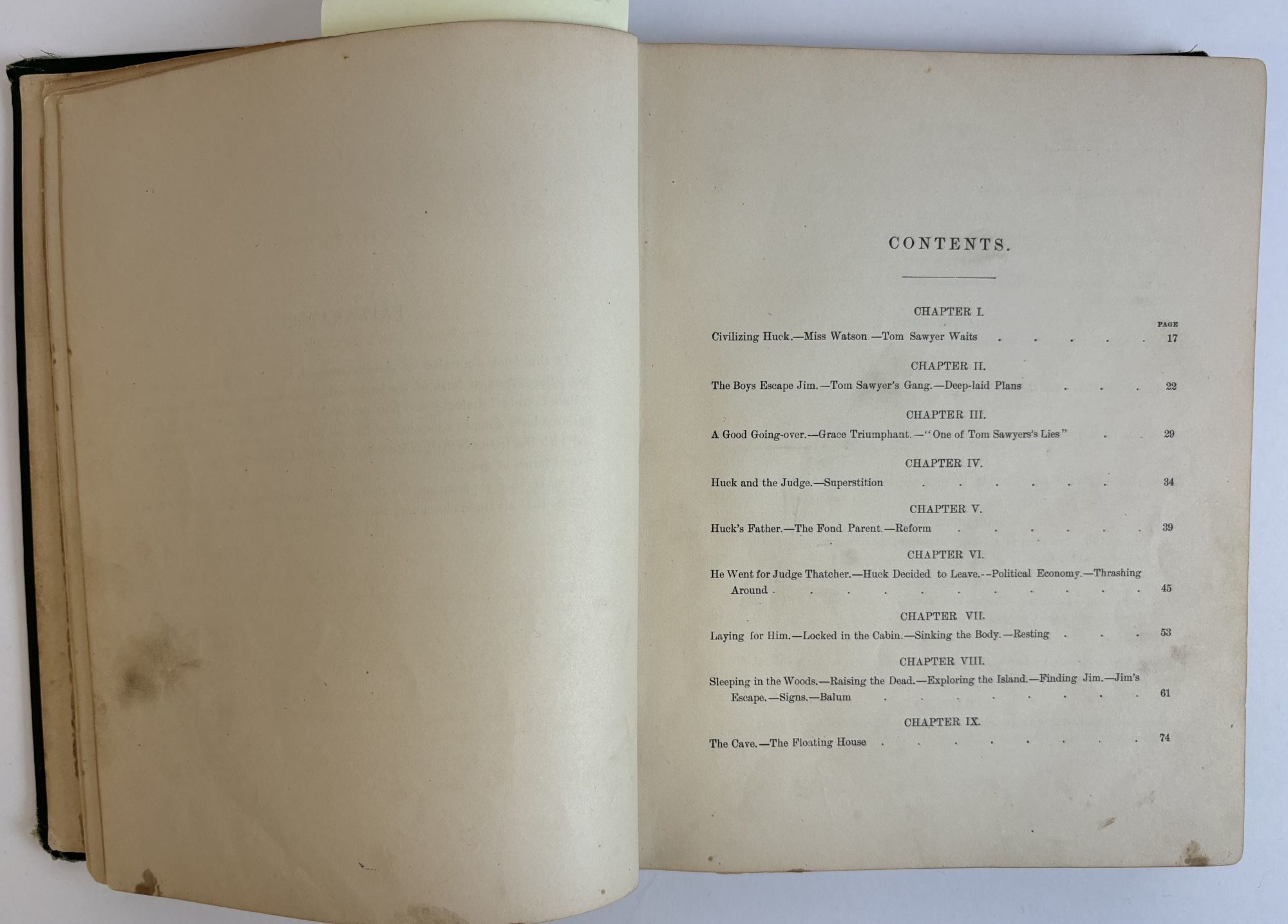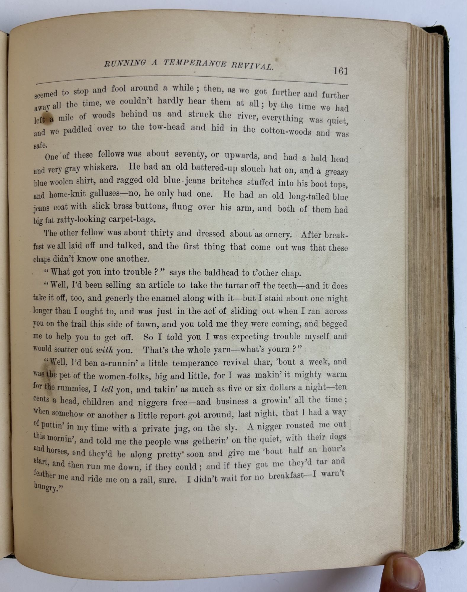 New York: Charles L. Webster, 1885. First Edition. Hardcover. Octavo, [1]-366 pages. In Fair condition. Bound in green cloth with gilt and black lettering and decoration. Boards show rubbing to corners exposing boards, bumping to corners, fraying to spine edges, boards exposed along tail edges, head edge of spine partially chipped off, and mild to moderate edge and shelf wear. Binding somewhat shaken. Text block has splitting to interior hinges, light age toning, last page of illustration list detached, light gray staining on some forward pages, and tearing to fore edge of some forward pages. Points includes: List of illustrations has page 88 rather than page 87, "was" instead of "saw" on page 57, last 5 in 155 on page 155 set slightly lower than other numbers, Leaf 23 8 pasted under Terminal endpaper, and earliest portrait frontispiece with "Heliotype Printing Co." BAL 3415. [Shelved in Room G]. 1372620. Special Collections.