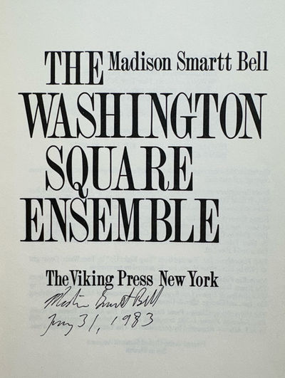 New York: The Viking Press, 1983. First Edition. First Printing. Octavo (23.5cm); red and black paper-covered boards, with titles stamped in silver on spine; dustjacket; [xii],342,[6]pp. Signed by Bell on the title page, dated July 31, 1983, and inscribed on the half-title to author Jenn Crowell: "For Jenn Crowell / I greet you at the beginning of a brilliant career / Madison Smartt Bell." Mild offsetting to pastedowns, else very Near Fine in a Near Fine dustjacket, unclipped (priced $15.75), with light wear to extremities and some mild surface wear to panels. Bell's first novel, centered around a heroin dealer (and those within his orbit) in New York during the 1980s.