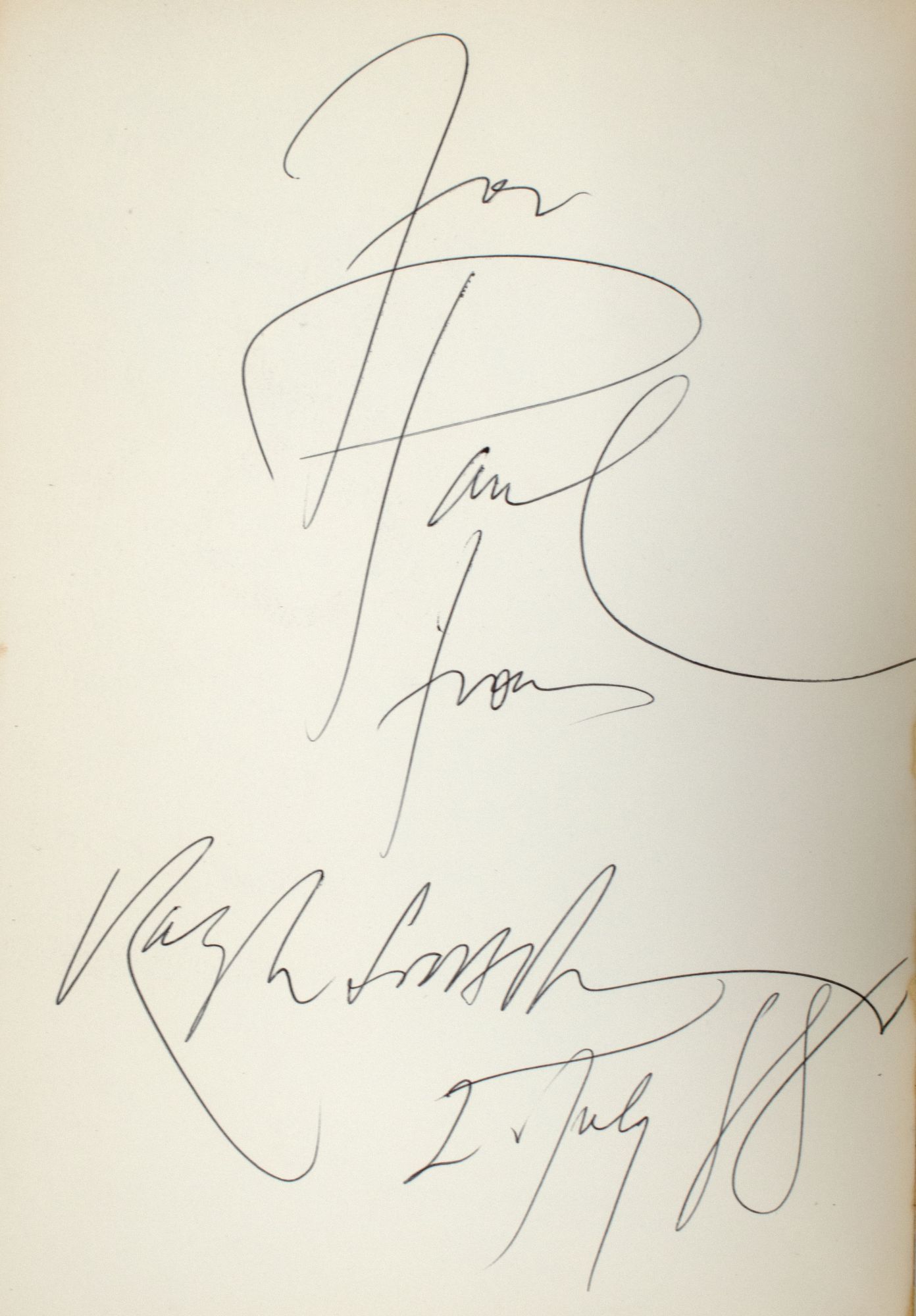 London [printed in the United States]: Picador, 1983. First UK edition, first printing. Illustrated by Ralph Steadman. [ii] 158 pp. 1 vols. Large octavo. Illustrated wrappers with original price sticker on verso, else overall near fine. Inscribed by Steadman on inner cover. Steadman, Ralph. First UK edition, first printing. Illustrated by Ralph Steadman. [ii] 158 pp. 1 vols. Large octavo. Inscribed from Steadman to Rolling Stone Magazine staffer, Paul Rothkopf, July 2, 1988.