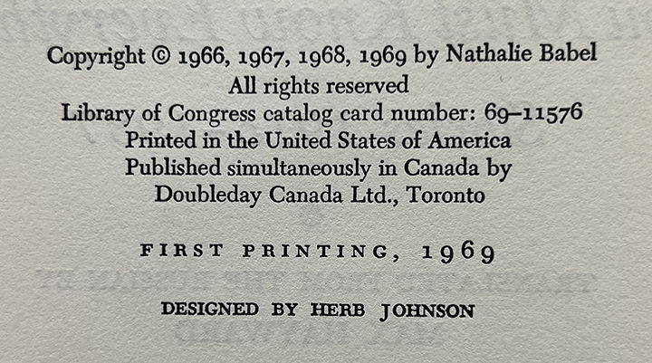 New York: Farrar, Straus & Giroux, 1969. First Edition. Hardcover. Fine/Near Fine. Translated by Max Hayward. Edited and with Notes by Nathalie Babel. Fine in a Near Fine jacket, unclipped ($5.95), lightly toned at the edges, bumped at the head and foot of the spine, shallow chips at the top edge of the back panel. Purple cloth with silver gilt lettering on the spine. Firmly bound with a slight forward lean and red top stain, clean internally. A collection of nineteen Babel stories translated into English for the first time, two of which had never been published in their original Russian.