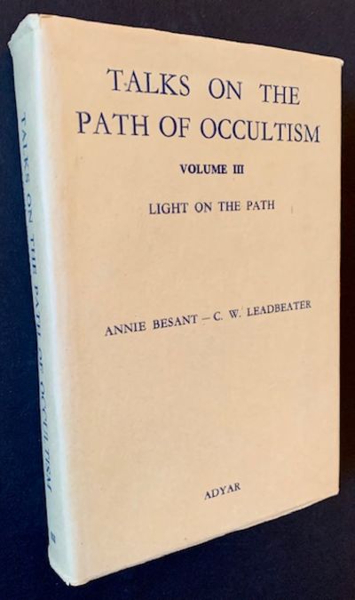 Madras, India: The Theosophical Publishing House, 1981. Boards. Near Fine/Near Fine. A very sharp copy of the 1981 7th printing of Volume III. Clean and Near Fine in a crisp, Near Fine dustjacket. 12mo, 472 pgs. (From the title page: "A Commentary on 'At the Feet of the Master', 'The Voice of the Silence' and 'Light on the Path'").