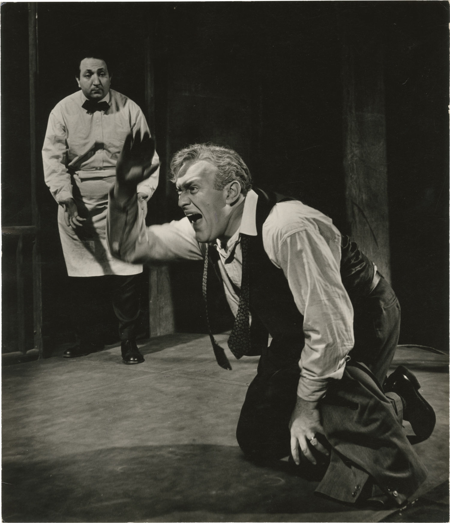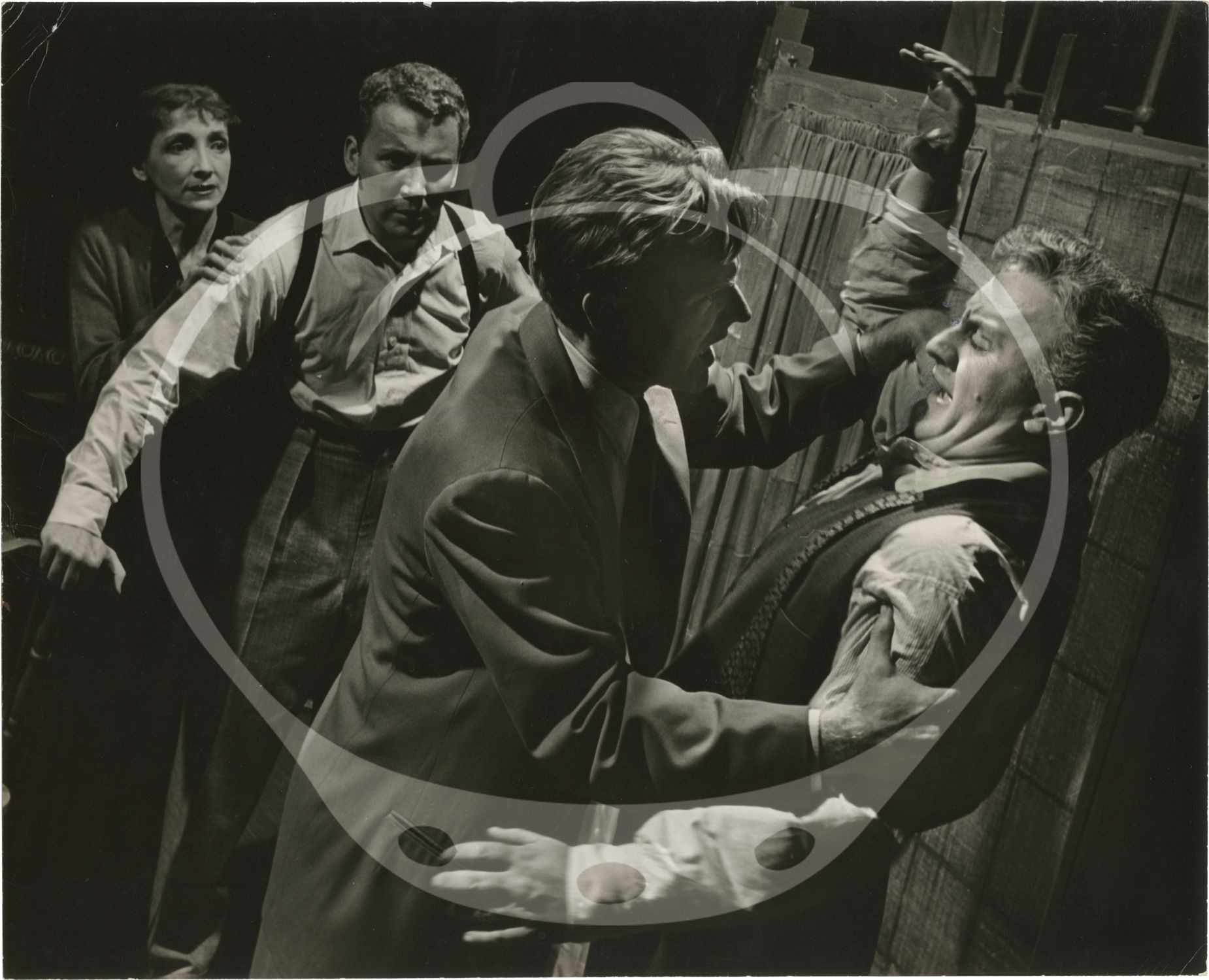 New York: W. Eugene Smith, 1950. Five vintage oversize borderless photographs, taken during the original 1949-1950 Broadway production of Arthur Miller’s 1949 play. All photographs bear catalog stamps and credit stamps of noted photographer W. Eugene Smith on the versos.