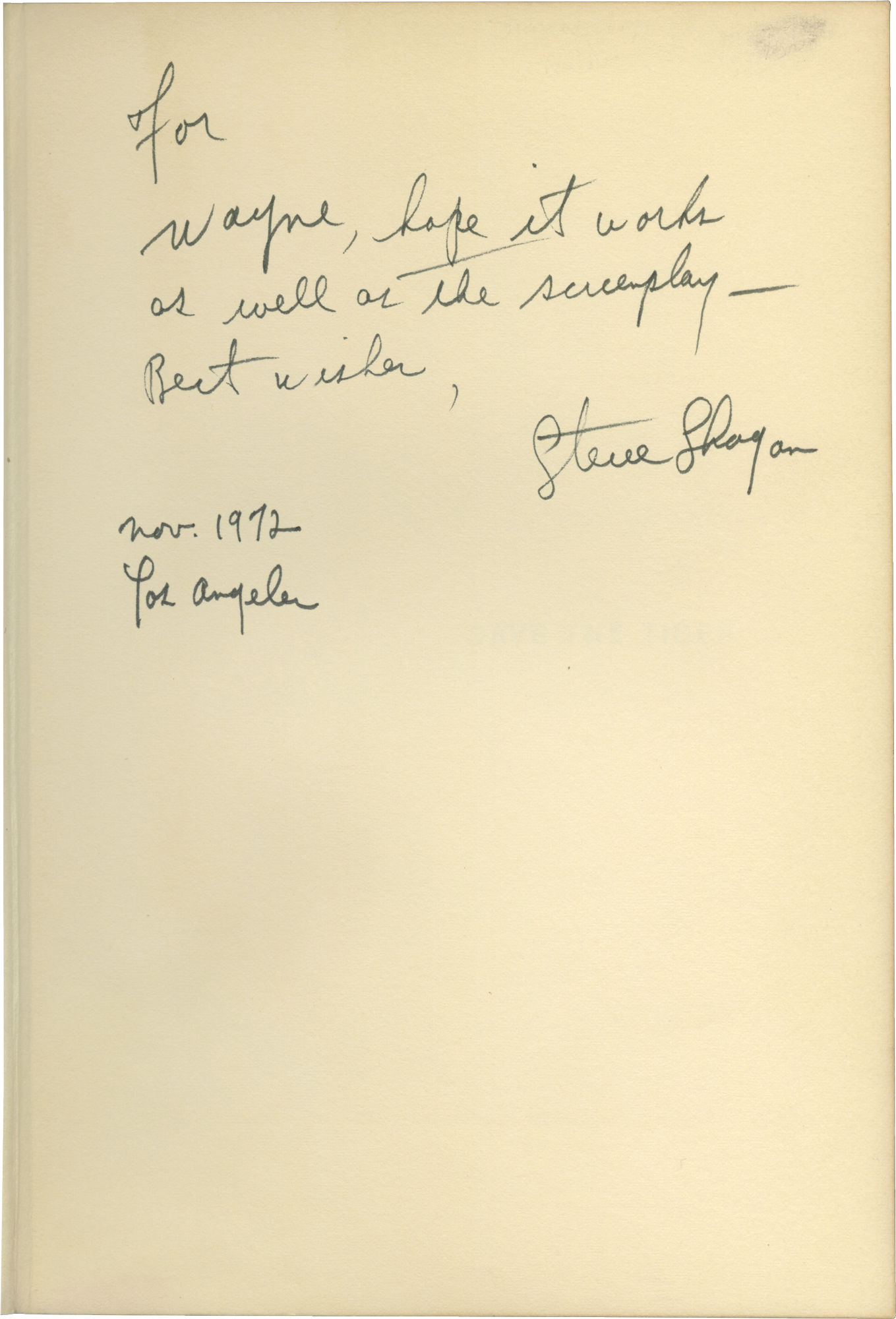 Save the Tiger (First Edition, inscribed by the author in the year of publication)