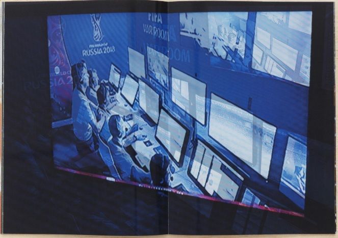 Rio de Janeiro: {Lp} press, 2018. b/w and color plates, string bound color pict. wrps. "We are going to do one zine per week throughout the year 2018, from the edition to the printed page. 52 weeks, 52 new photobooks." --Publisher webpage. Weekly photobook comprising a photographic sequences of images of Brazil's soccer match against Switzerland during the 2018 FIFA World Cup in Russia and the controversy in the use of the video assistant referee (VAR) system.