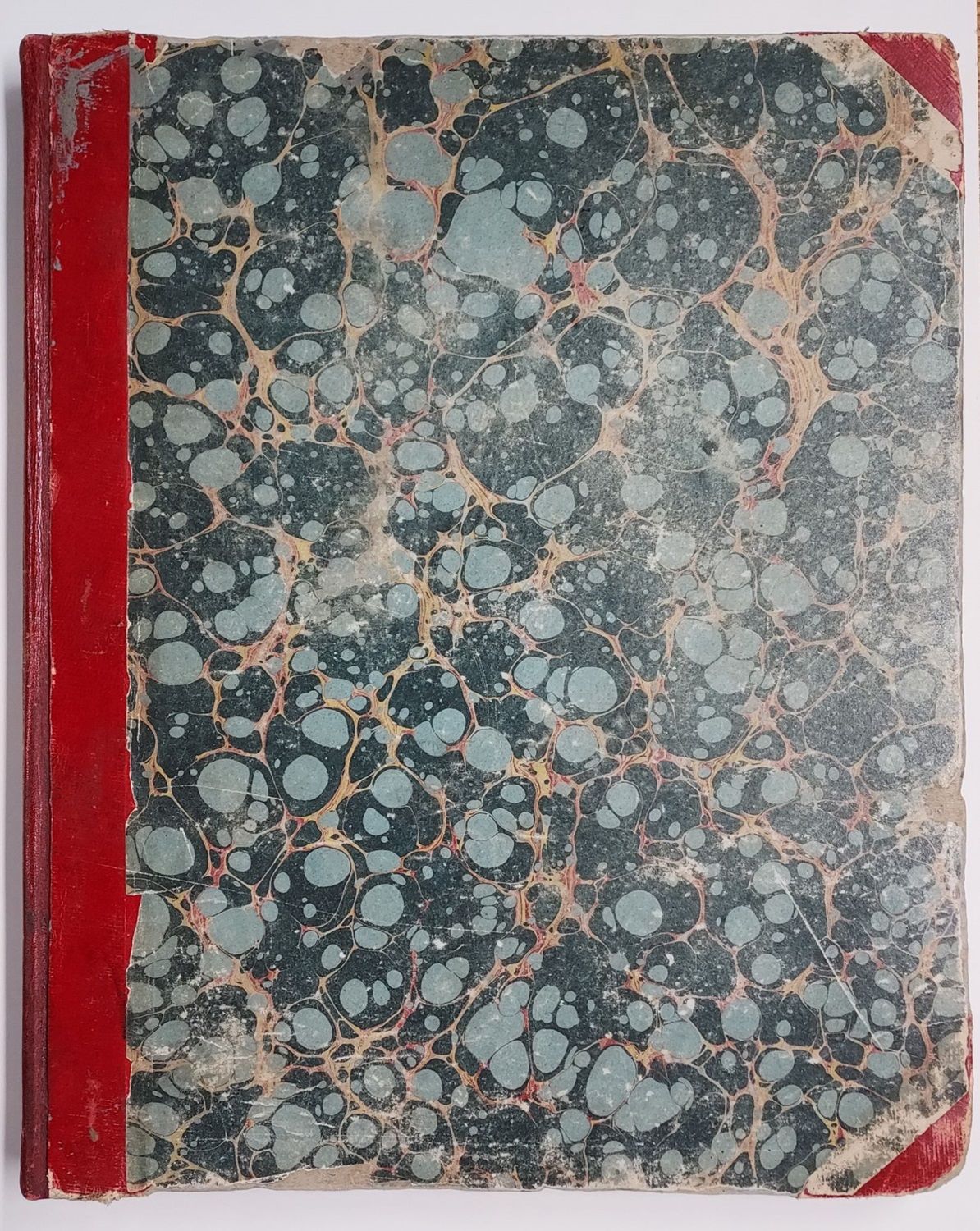 Liverpool: Franklin D. Richards, 1855. First edition. Very Good. viii [1] - 120 pp. With the frontispiece folding map by F. D. Richards and all engravings and woodcuts present. Folio [31 cm] Rebacked in red leather with gilt bands and gilt stamped title on the spine. Original marble boards, with underlying boards exposed along the edges. Sprinkled edges. New gray endpapers. Hinges reinforced. Ex-library, with a single library label on the front pastedown. The front flyleaf has several minor tears to the fore-edge, and there are light tide marks (the majority of them small) in the margins of the plates. These marks occasionally just begin to bleed into the images. Caption title of bottom engraving on plate facing p. 44 trimmed close.
