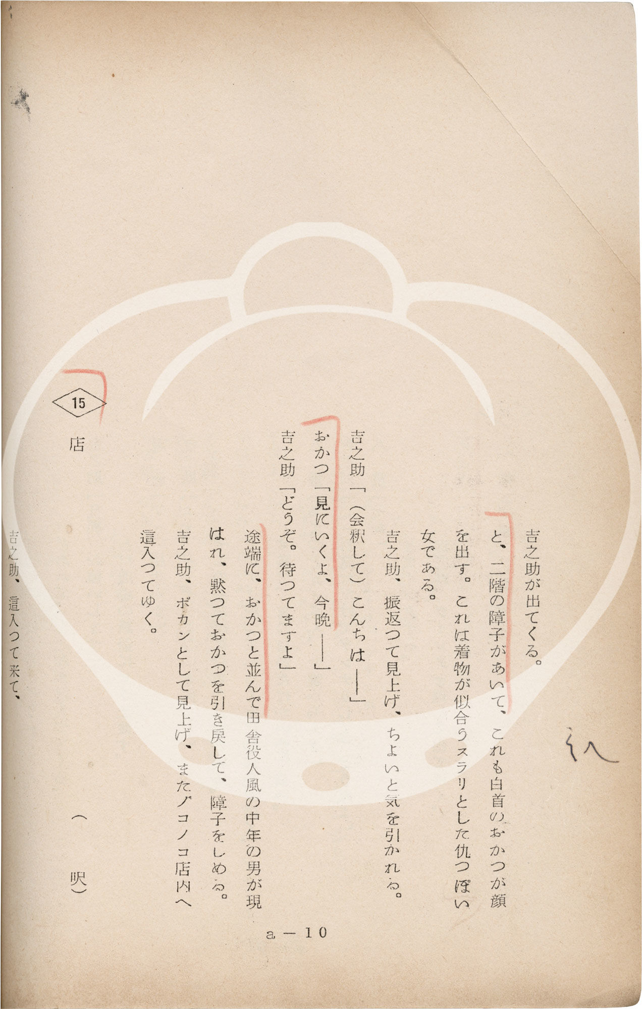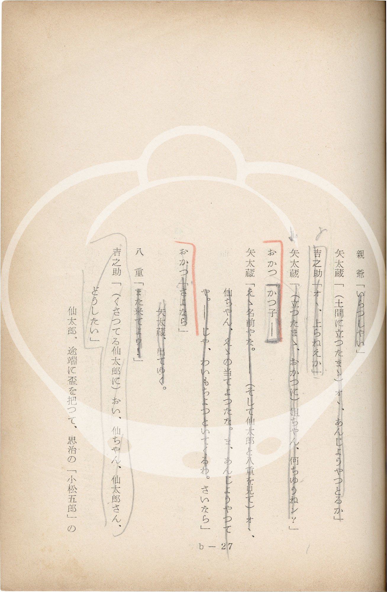 1959. Vintage screenplay for the 1959 film. Text in Japanese. Annotations in manuscript pencil on several leaves, noting revisions and amendments.