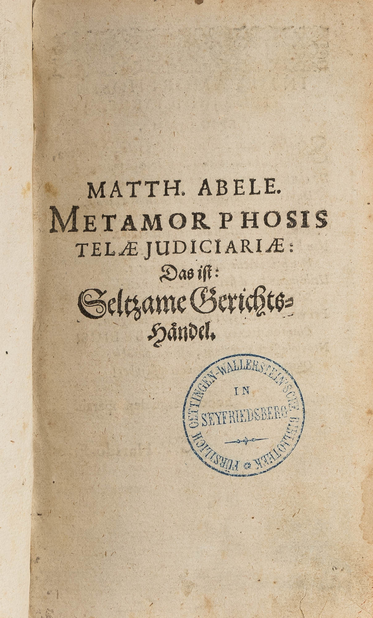 Metamorphosis Telae Judiciariae, Das Ist: Seltsame Gerichtshandel..