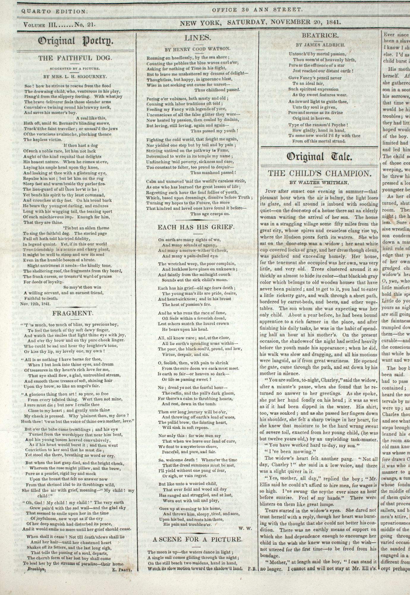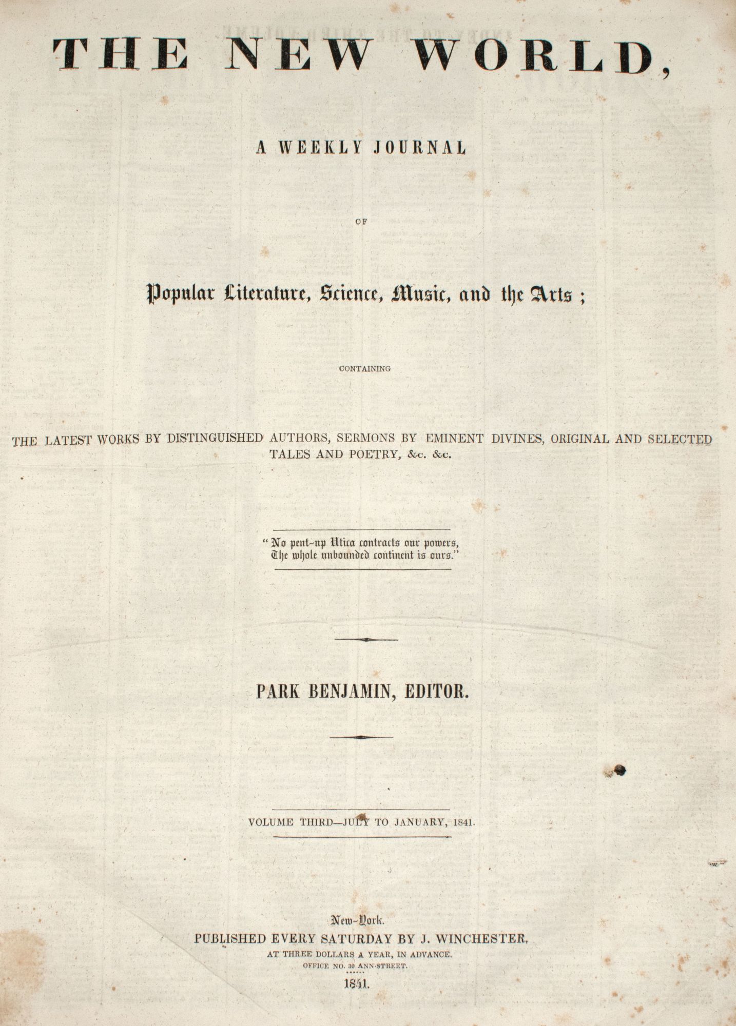Three First Printings of Whitman IN The New World, A Weekly Journal of Popular Literature, Science, Music, and the Arts..., Vol. III