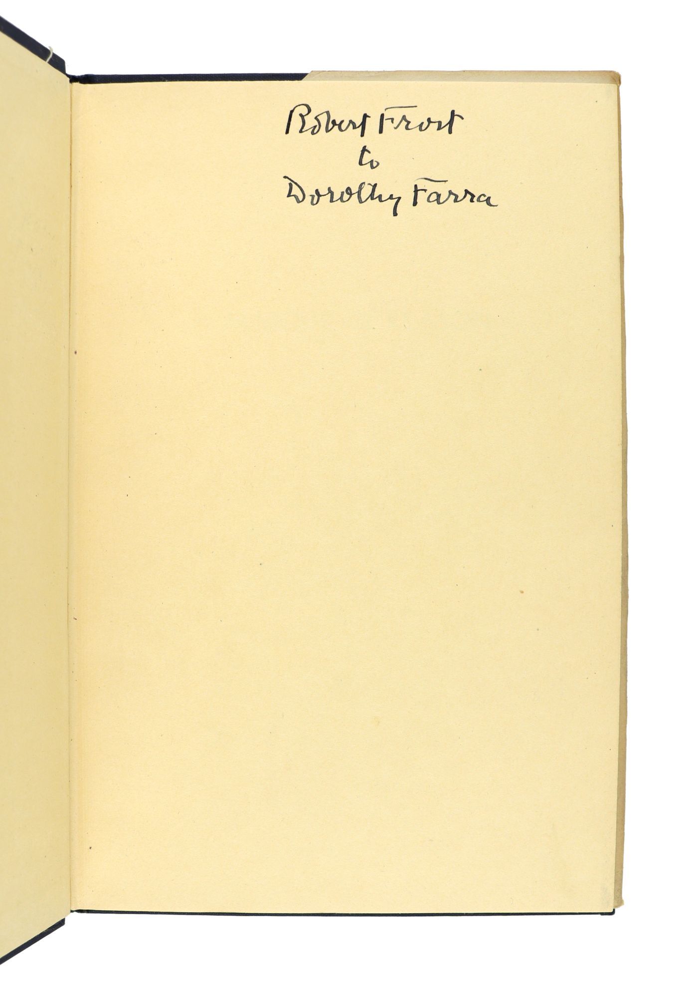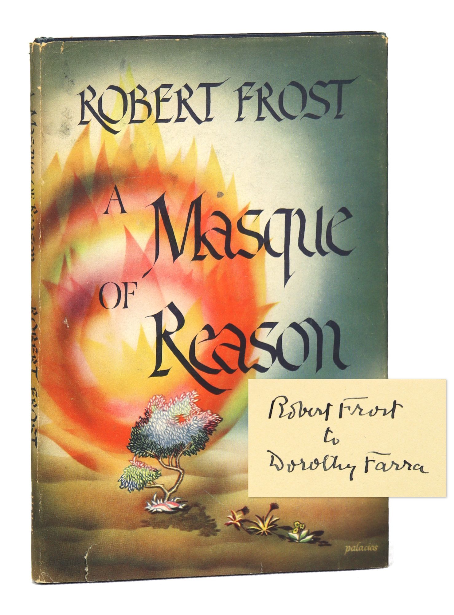 Frost's comedic play set up as a final chapter to the Book of Job, published for his 70th birthday. This copy signed by Frost to a Dorothy Farra without inscription on front free endpaper.