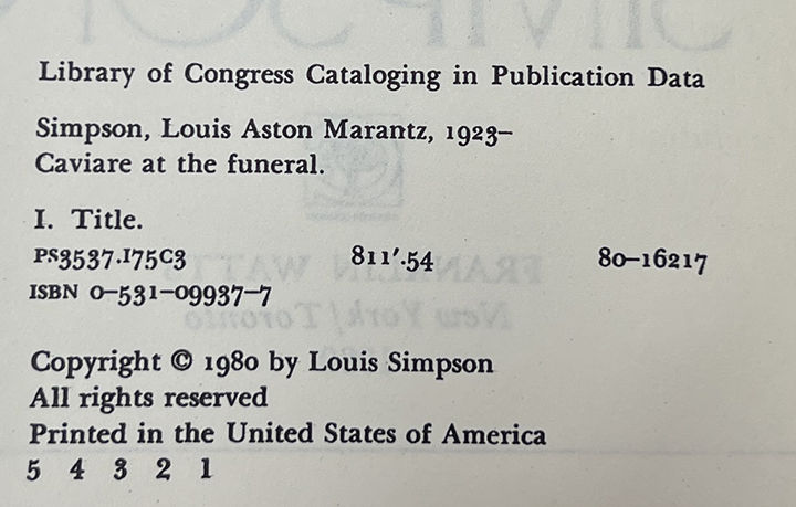 New York: Franklin Watts, 1980. First Edition. Hardcover. Fine/Fine. Signed by Simpson on the half-title page. Fine in a Fine jacket, unclipped ($7.95). Black cloth with silver and purple gilt lettering and designs on the spine and front board. Square and firmly bound, clean internally.