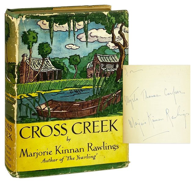 New York: Charles Scribner's Sons, 1942. Very Good/Very Good. New York: Charles Scribner's Sons, 1942. First Edition with "A" to copyright page. Signed by Rawlings with brief inscription to previous owner at front fly leaf. Octavo. 368 pp. Illustrated dust jacket with $2.50 price present. Green boards stamped in silver; dark topstain; illustrated endpapers. Dust jacket worn and chipped along edges and folds with toning to spine and tape reinforcement to verso. Boards worn with mild soiling to edges, additional wear and a few chips along spine. Binding is sound and pages unmarked. Even with the flaws still a Very Good signed copy of Rawlings' reflection on her experiences living in the Florida town.