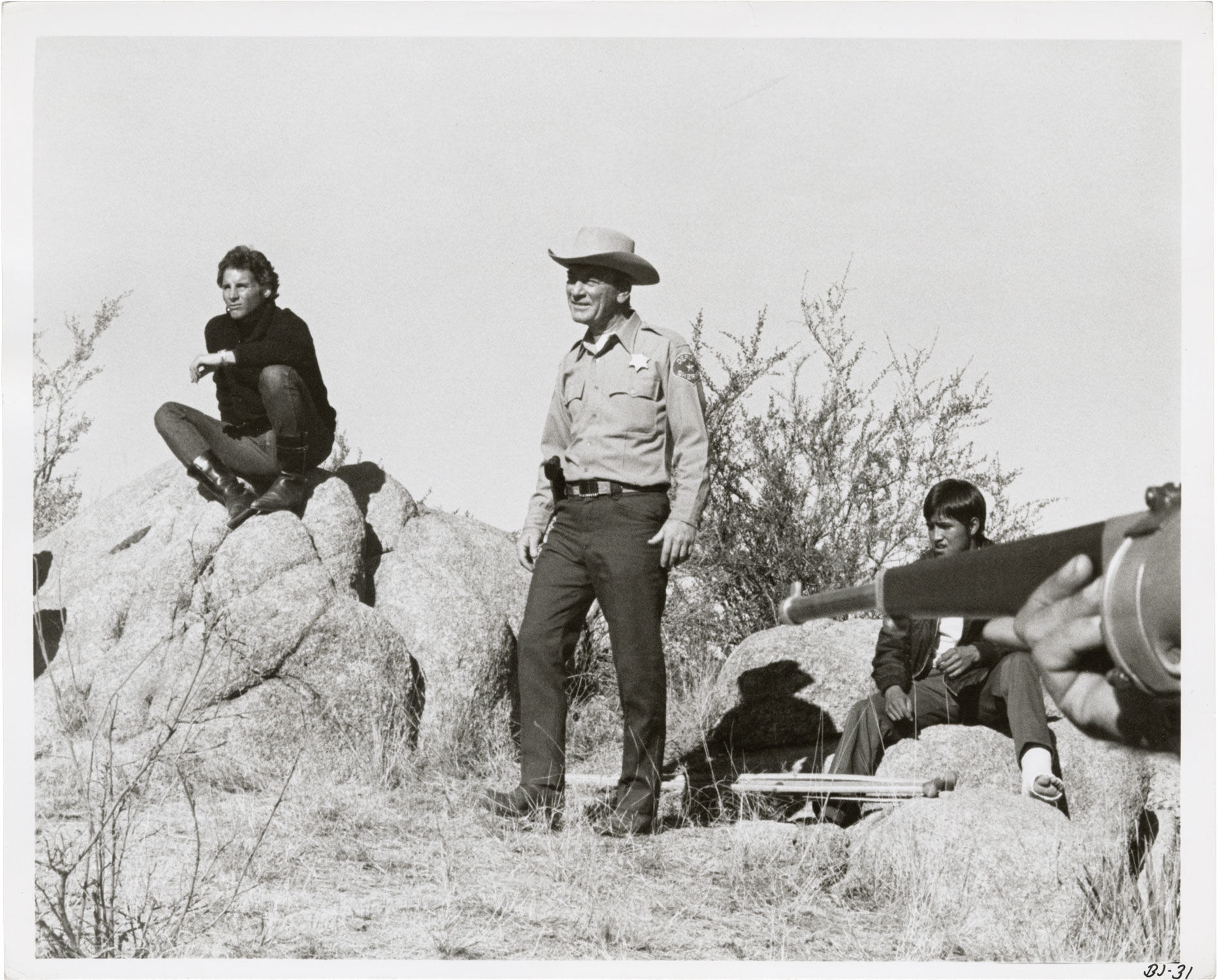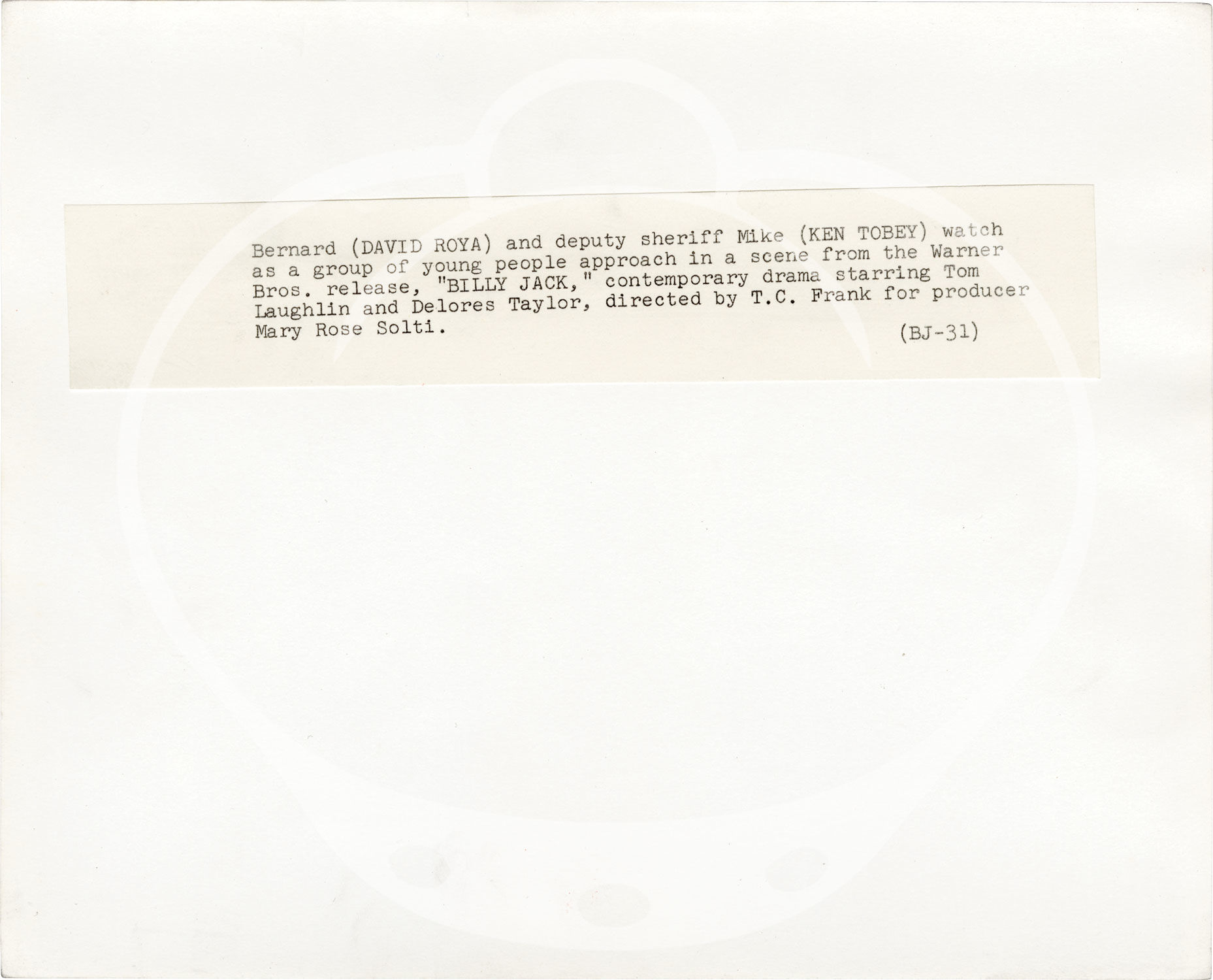 N.p.: N.p., 1971. Vintage reference photograph from the 1971 film. Printed mimeo snipe affixed to the verso.