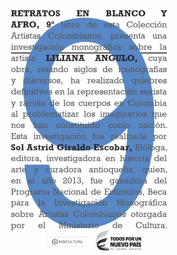 RETRATOS EN BLANCO Y AFRO : LILIANA ANGULO; Colección artistas colombianos, 9. Ministerio de Cultura de Colombia, Programa Nacional de Estímulos 2013, Beca de Investigación Monográfica sobre Artistas Colombianos