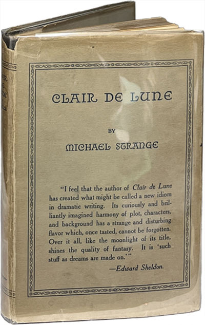 New York: G.P. Putnam's Sons, 1921. First Edition. Hardcover. Near Fine/Very Good. Near Fine in a Very Good jacket, unclipped (no price), generaly toned, a small chip at the head of the spine. Black cloth, faintly bumped, with gilt lettering on the spine and front panel. Square and firmly bound, former owner's name on the front endpaper, clean otherwise. Strange's play written during her marriage to John Barrymore, who played Gwymplane the clone in the play. Barrymore's sister is listed as the lead role of the Queen.