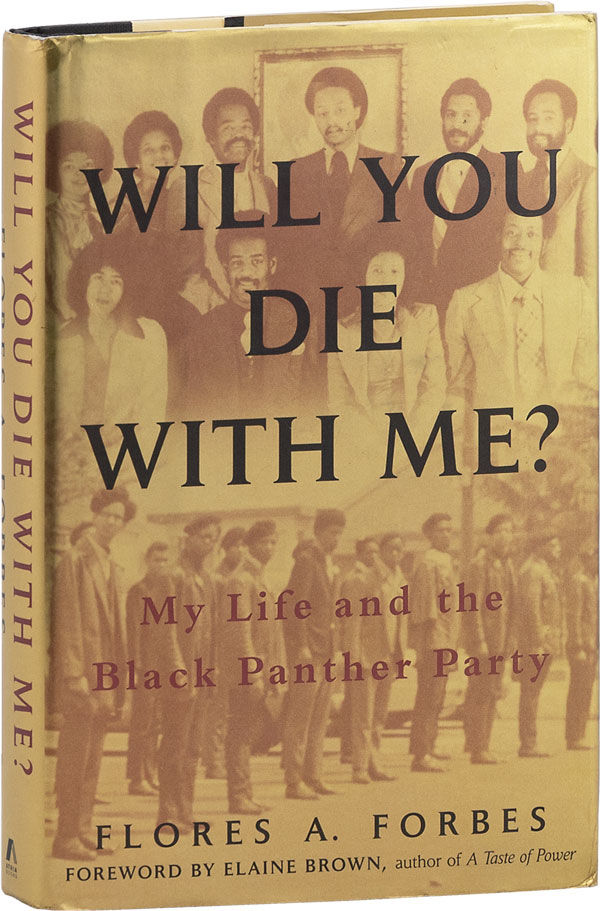 New York: Atria Books, 2006. First Edition. First Printing. Octavo (24.25cm); black and cream paper-covered boards, with titles stamped in gilt on spine; dustjacket; xiv,302,[4]pp; illus. Inscribed by the author in the year of publication along the lower margin of the frontispiece: "8/4/06 - To Carl Reddy / Will you die with me? / Flores A. Forbes." Spine ends nudged, lower corners gently tapped (though still sharp); Near Fine. Dustjacket is unclipped (priced $26.00), with modest external wear, and a few surface abrasions; Very Good+. Memoir of a California Black Panther, recounting his days as the youngest member of the organization's central committee, his participation in a variety of operations with Huey P. Newton, his incarceration, and his self-professed journey "from rage to redemption." With a foreword by Elaine Brown.