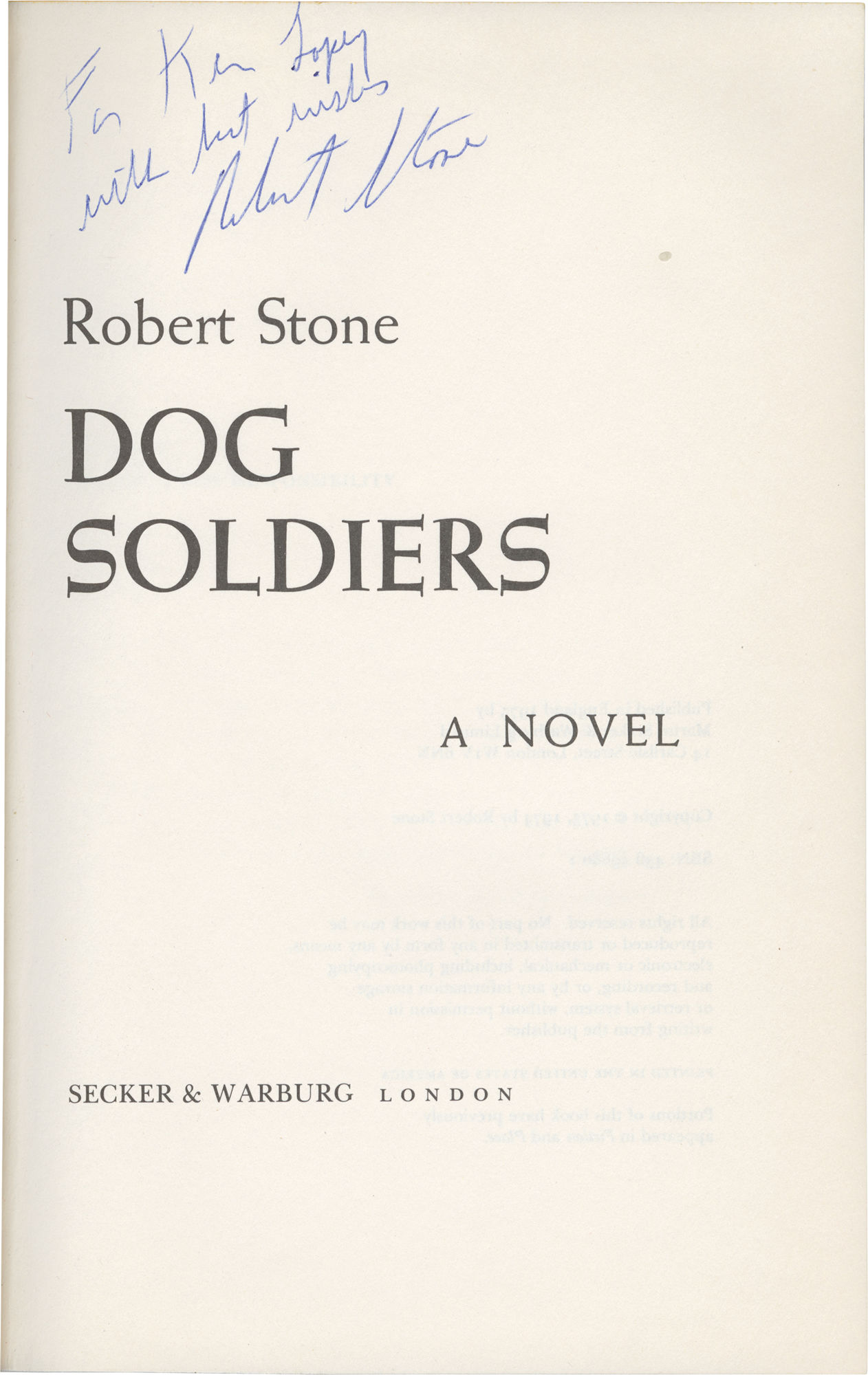 Dog Soldiers (First UK Edition, Association copy, inscribed by the author to his bibliographer)