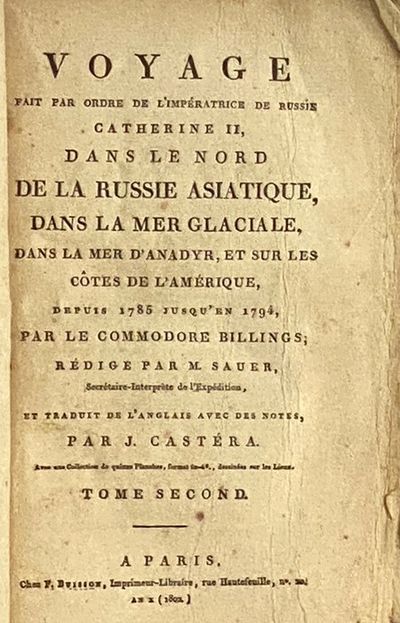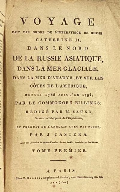 Voyage Fait par Ordre de l'Imperatrice de Russie Catherine II, Dans le Nord de la Russia Asiatique, Dans la Mer Glaciale, Dans la Mer d'Anadyr, et sur les Cotes de l'Amerique, Depuis 1785 Jusqu'en 1794, in Two Volumes