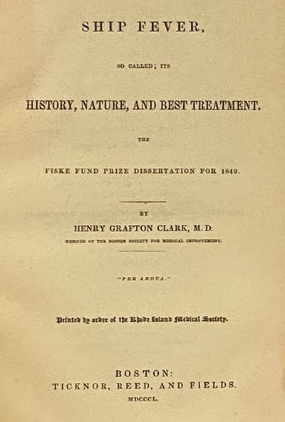 Ship Fever, So Called; Its History, Nature, and Best Treatment. The Fiske Fund Prize Dissertation, for 1849. Printed by Order of the Rhode Island Historical Society