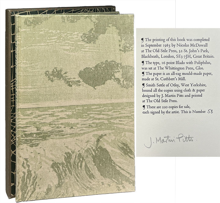 London: The Olde Stile Press, 1985. Hardcover. Fine. Alan Powers. Linocuts by J. Martin Pitts. Limited to 220 copies signed by Pitts on the limitation page. Fine in a Fine slipcase. Patterned cloth on the boards with green ink lettering on the spine. Square and firmly bound, clean internally. A selection of Crabbe's work that presents the basis for the titular character of Benjamin Britten's opera of the same title.