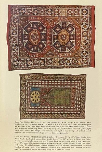 Boston, Massachusetts: New York Graphic Society, 1976. Revised Edition. Large Hardcover. Very Good/Very Good. 12x9x1. Revised edition. Jacket edges rubbed, jacket soiled. Spine leans to the left. 1976 Large Hardcover. 214 pp.Widely recognised as the standard introduction to this subject, this book focuses on the nineteenth- and twentieth-century weaving of the Middle and Far East. It begins with a brief history of carpets and goes on to discuss weaving techniques, dyes and design. Traditional practices are described, along with computer-aided design. The book then covers the full range of oriental rugs by country and region respectively, providing detailed information on the characteristics of each type, illustrated with colour plates of typical examples.