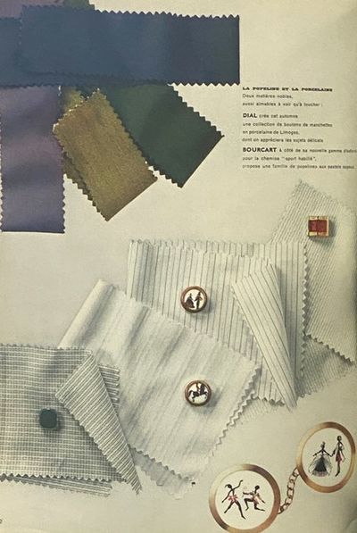 Paris, France: S.N, 1958. Large Softcover. Near Fine. Includes onion-skin jacket. Multiple chips and tears to jacket. 1958 Large Softcover. 67 pp. French text. A magazine published by the association of French masculine elegance. Paris fashion for Autumn (October) 1958.