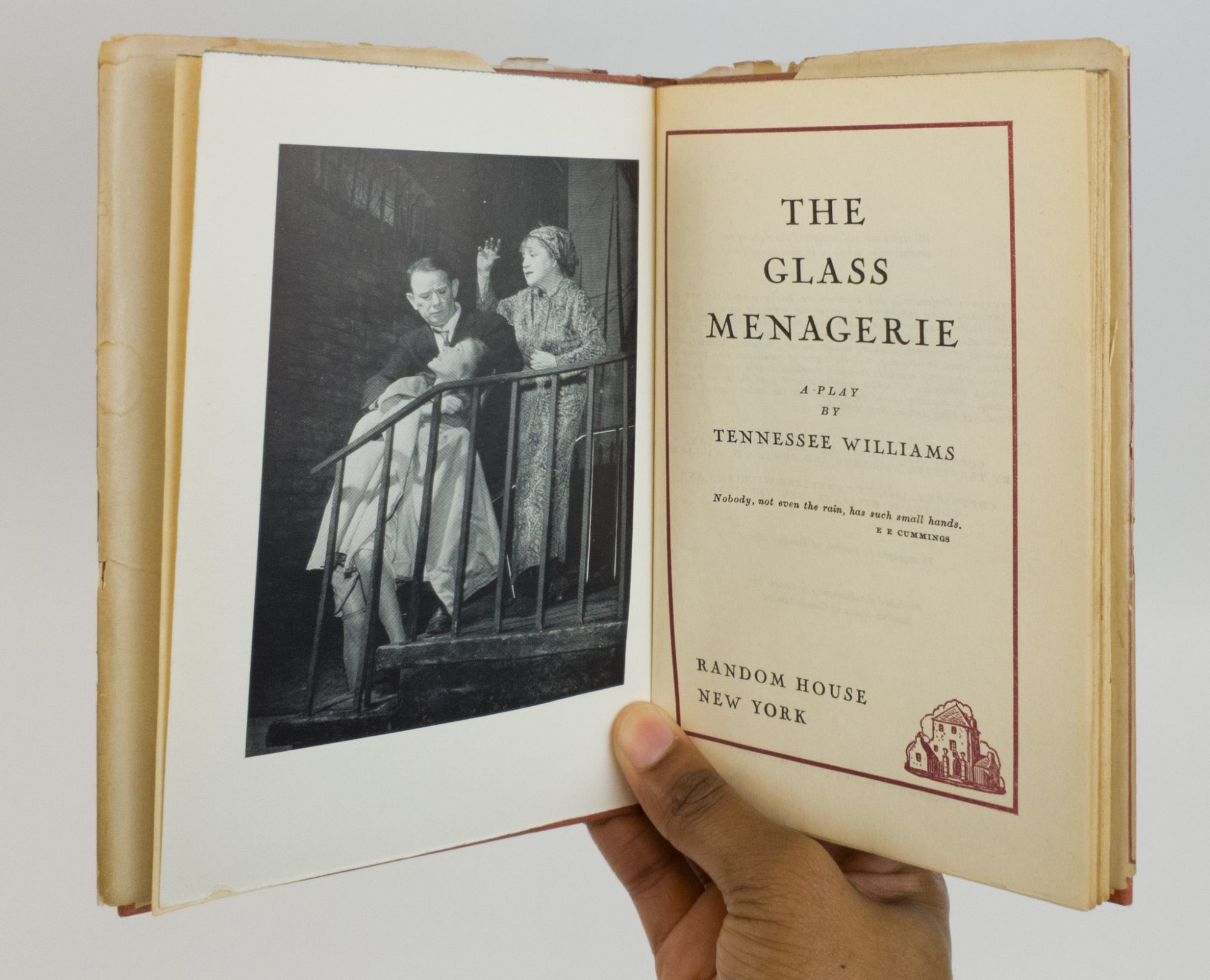 New York: Random House, 1945. First Edition, First Printing. Hardcover. Octavo, 124 pages. In Very Good minus condition with Fair dust jacket. Red spine with brown text. Dust jacket is protected by mylar covering and has front flap reattached with archival tape, archival tape on inside of dust jacket fixing tears, non-archival tape over tear on front cover, chipping and tearing to head edges of both covers and spine, toning to rear cover, and light sunning to spine. Boards have light rubbing to corners, bending to tail edge of spine, and rubbing to tail edges. Textblock has light age toning. Shelved in Case 13. 1373961. Shelved Dupont Bookstore.