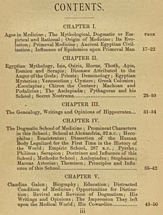 Philadelphia: Presley Blakiston / Press of Wm. F. Fell & Co, 1880. First Edition. Hard Cover. Very Good/No Jacket. Corners rubbed, ink name on title page, small label on front endpaper. 1880 Hard Cover. viii, 228, 8 pp. 8vo. Reddish brown cloth, gilt titles and rules on spine, blind-stamped borders on front and rear boards, dark brown endpapers. A detailed history of medicine from the ancient Egyptians through the time of publication, by the dean of the Central College of Physicians and surgeons at Indianapolis, who was also surgeon and major of the 43rd Indiana during the American Civil War.